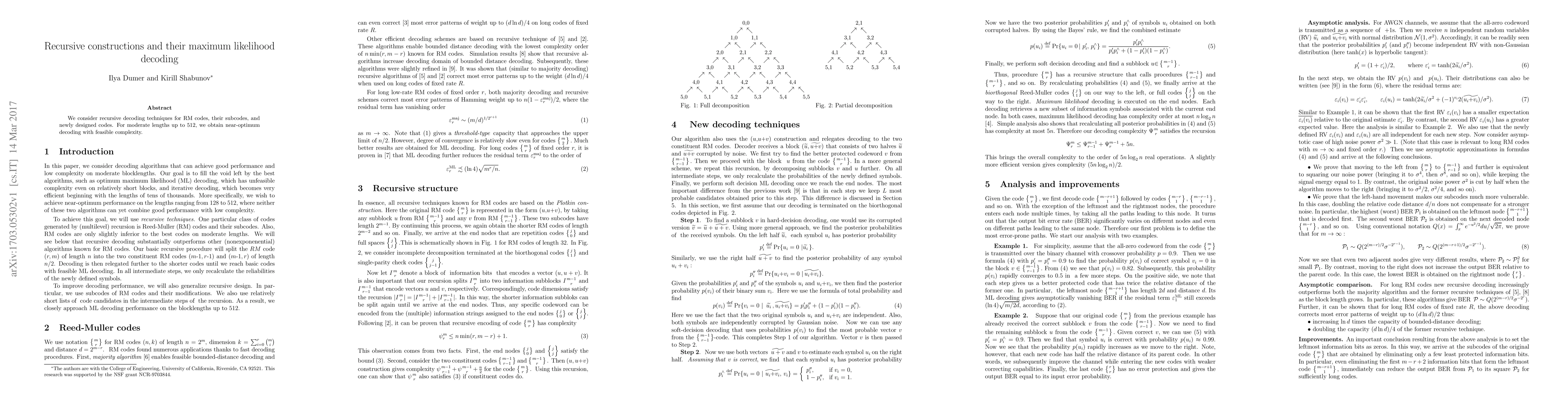 Researchers developed efficient decoding techniques for Reed-Muller (RM) codes, achieving near-optimum performance at moderate lengths up to 512, with feasible computational complexity.