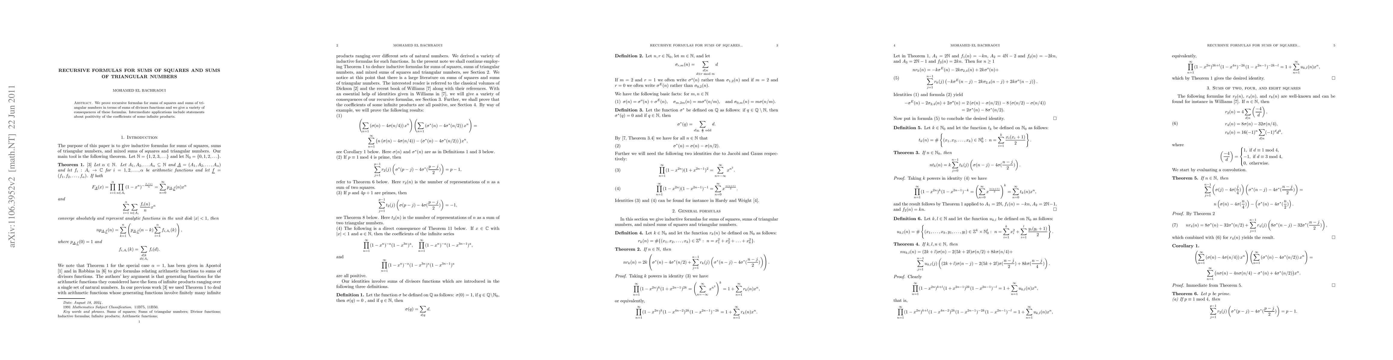 This paper establishes recursive formulas linking sums of squares and sums of triangular numbers to sums of divisors functions, with applications demonstrating the positivity of coefficients in certain infinite products. The derived formulas provide new insights into number theoretic properties.