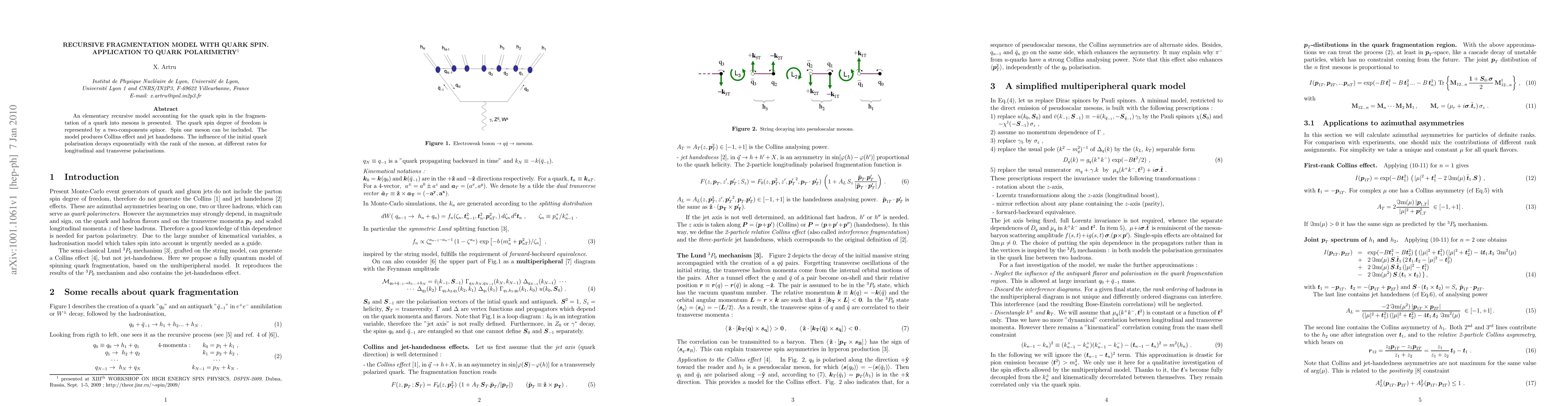 This paper introduces a recursive fragmentation model that incorporates quark spin, demonstrating its application in quark polarimetry. The model shows the Collins effect and jet handedness, with initial quark polarization's influence decaying exponentially with meson rank, differing for longitudinal and transverse polarizations.