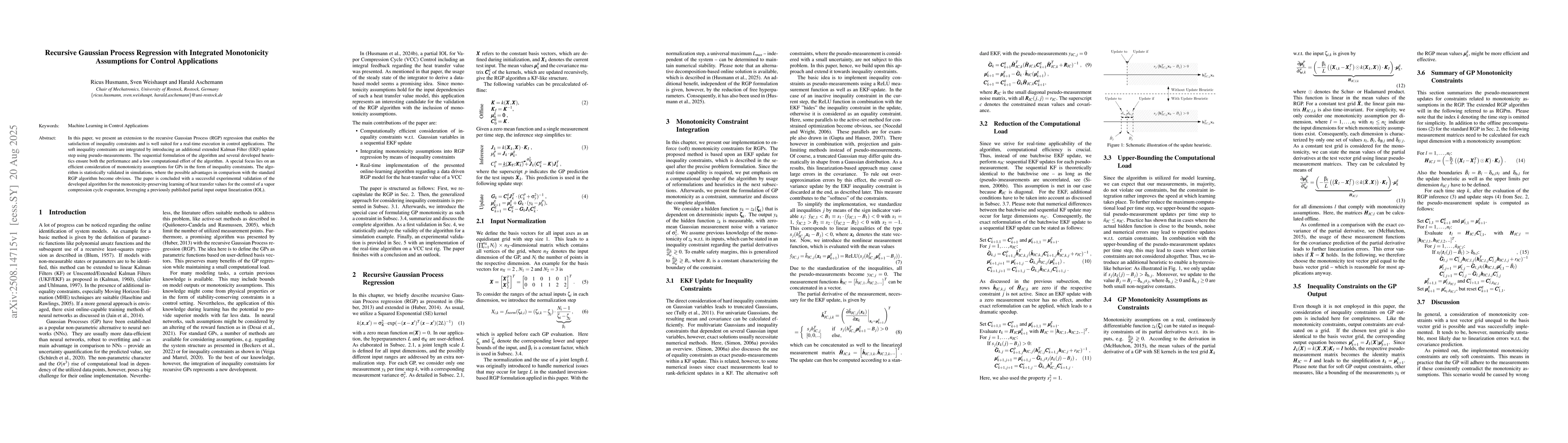 The paper extends recursive Gaussian Process (RGP) regression to enforce soft inequality constraints, suitable for real-time control applications. It introduces an additional Extended Kalman Filter (EKF) update step using pseudo-measurements and develops heuristics for efficient computation and monotonicity consideration.