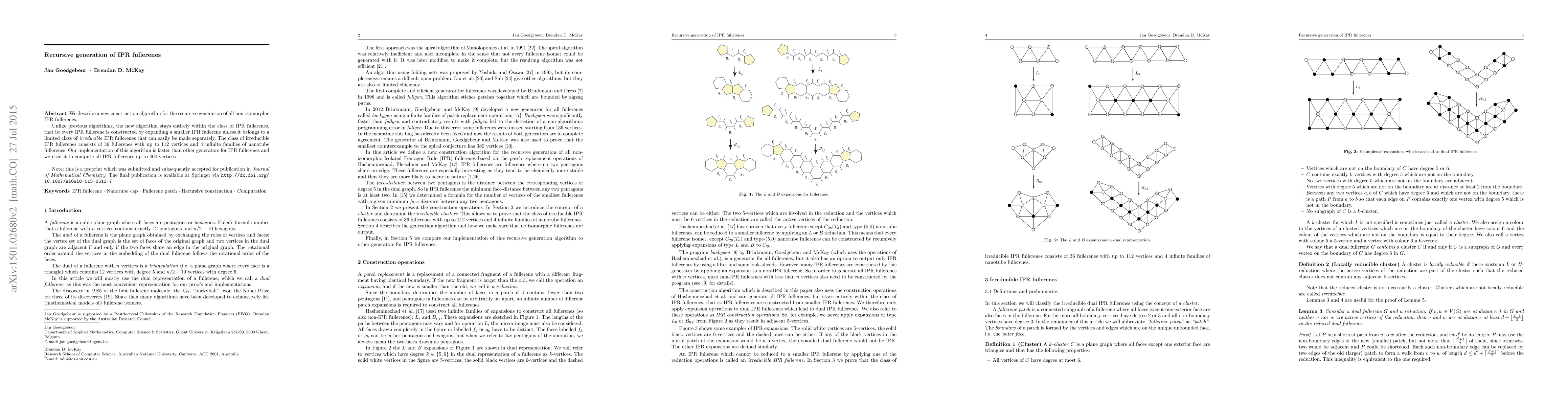 This paper introduces a novel recursive algorithm for generating all non-isomorphic IPR fullerenes, maintaining construction within the class of IPR fullerenes. The algorithm efficiently handles irreducible fullerenes separately, leading to a faster implementation that computes all IPR fullerenes up to 400 vertices.