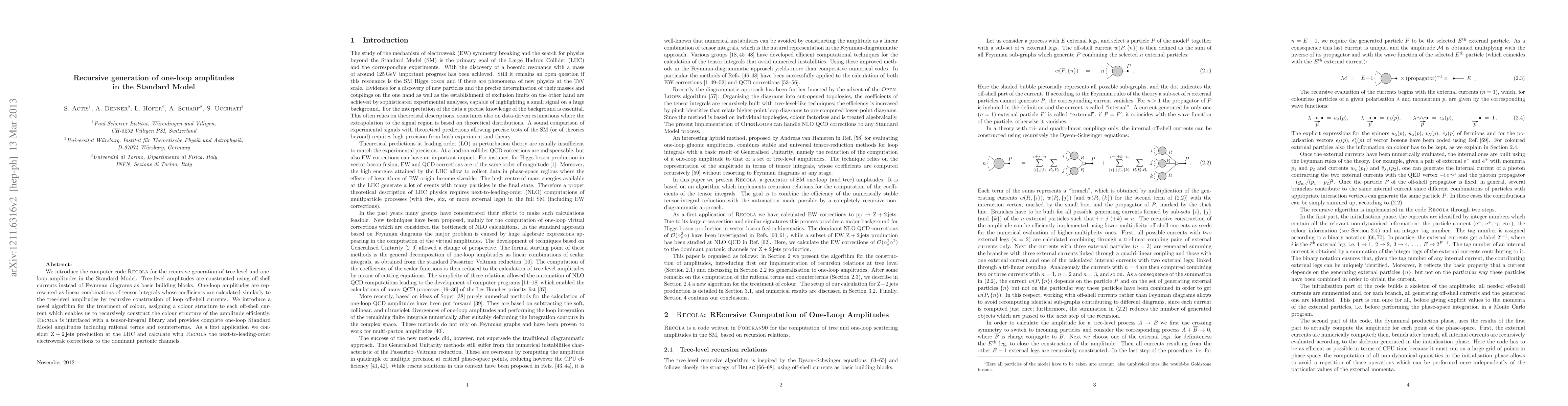 This paper introduces Recola, a computer code for recursively generating tree-level and one-loop amplitudes in the Standard Model using off-shell currents. It presents a novel algorithm for efficiently handling colour structure and computes next-to-leading-order electroweak corrections for Z+2jets production at the LHC.