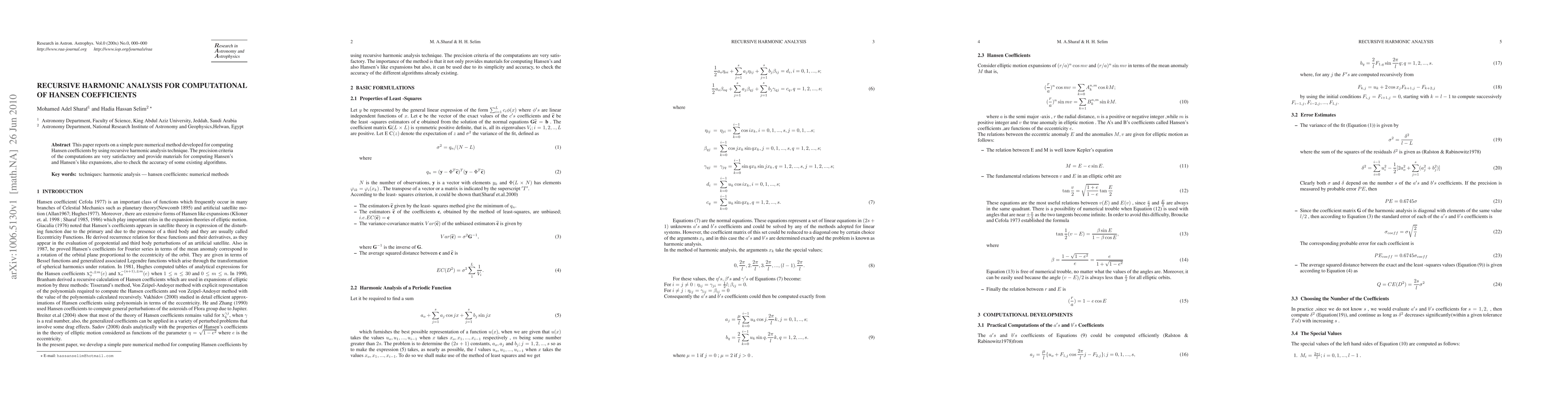 This paper reports on a simple pure numerical method developed for computing Hansen coefficients by using recursive harmonic analysis technique. The precision criteria of the computations are very satisfactory and provide materials for computing Hansen's and Hansen's like expansions, also to check the accuracy of some existing algorithms.