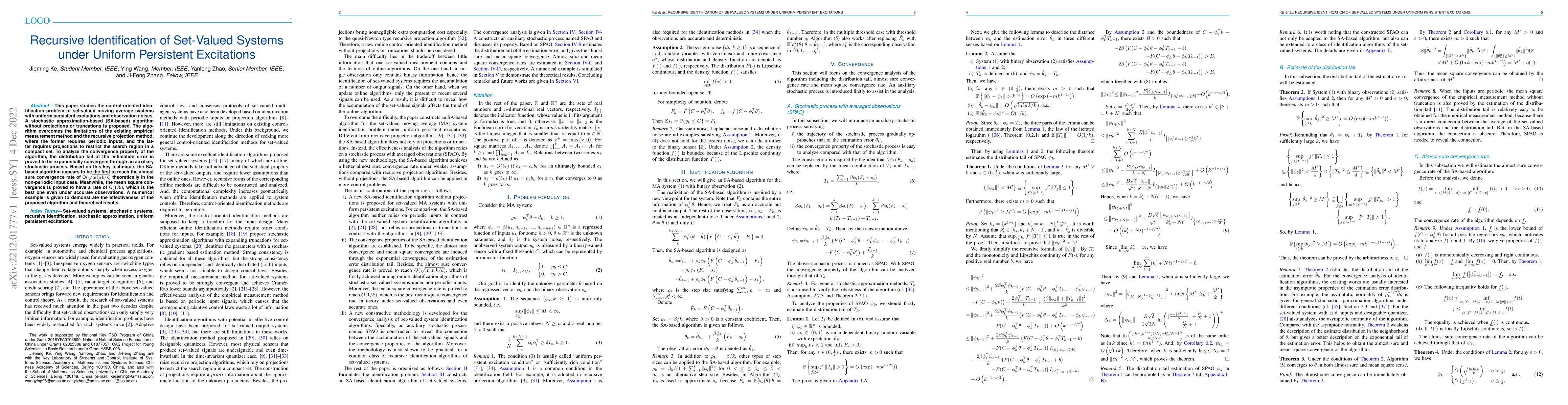 This paper proposes a stochastic approximation-based algorithm for identifying set-valued moving average systems under uniform persistent excitations without requiring projections or periodic inputs. The algorithm achieves almost sure convergence and mean square convergence rates, outperforming existing methods.