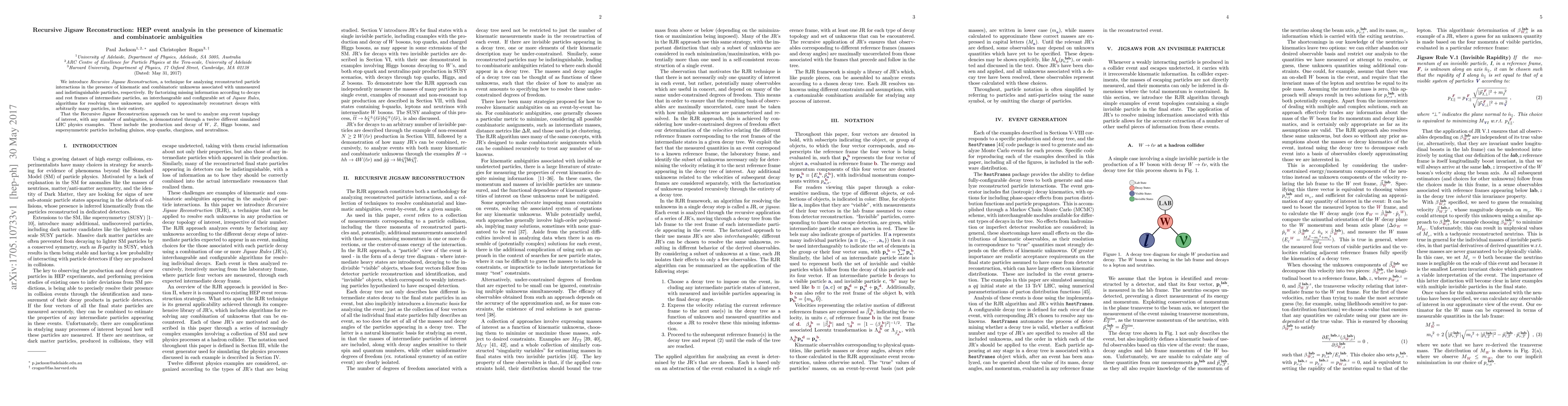 We introduce $Recursive~Jigsaw~Reconstruction$, a technique for analyzing reconstructed particle interactions in the presence of kinematic and combinatoric unknowns associated with unmeasured and indistinguishable particles, respectively. By factorizing missing information according to decays and rest frames of intermediate particles, an interchangeable and configurable set of $Jigsaw~Rules$, algorithms for resolving these unknowns, are applied to approximately reconstruct decays with arbitrarily many particles, in their entirety. That the Recursive Jigsaw Reconstruction approach can be used to analyze $any$ event topology of interest, with any number of ambiguities, is demonstrated through a twelve different simulated LHC physics examples. These include the production and decay of $W$, $Z$, Higgs bosons, and supersymmetric particles including gluinos, stop quarks, charginos, and neutralinos.
