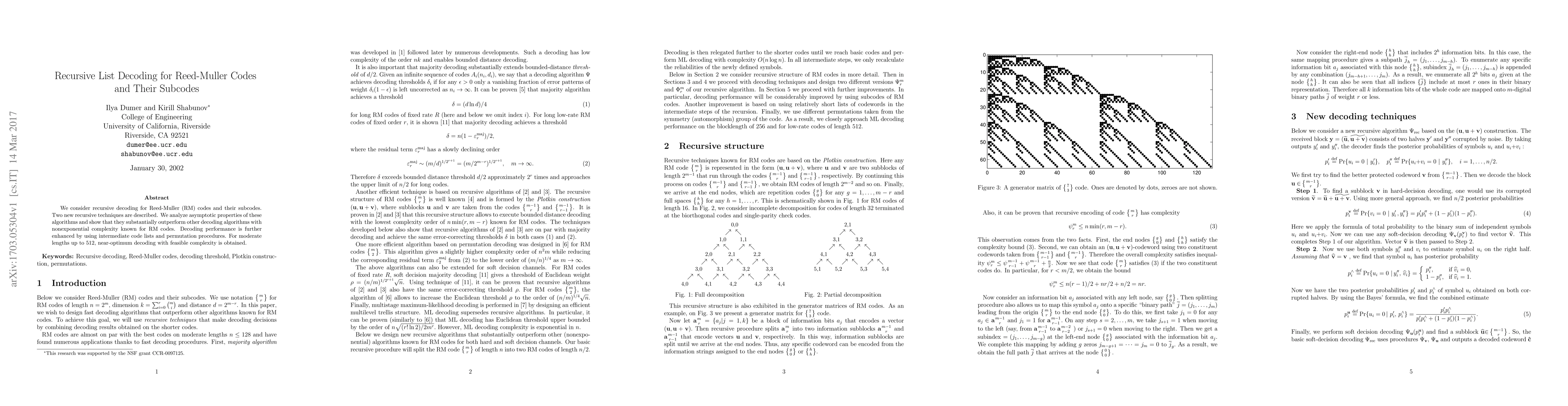 We consider recursive decoding for Reed-Muller (RM) codes and their subcodes. Two new recursive techniques are described. We analyze asymptotic properties of these algorithms and show that they substantially outperform other decoding algorithms with nonexponential complexity known for RM codes. Decoding performance is further enhanced by using intermediate code lists and permutation procedures. For moderate lengths up to 512, near-optimum decoding with feasible complexity is obtained.