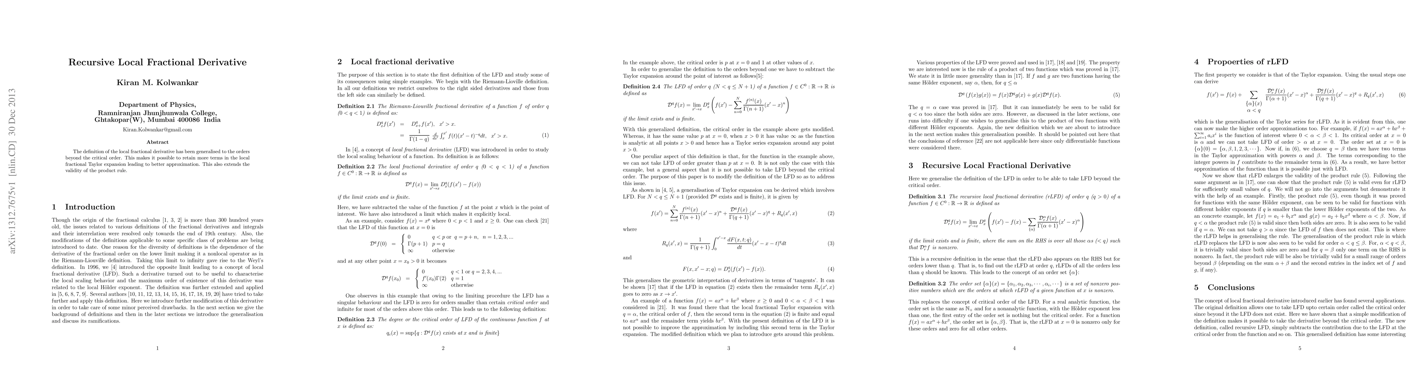 The definition of the local fractional derivative has been generalised to the orders beyond the critical order. This makes it possible to retain more terms in the local fractional Taylor expansion leading to better approximation. This also extends the validity of the product rule.