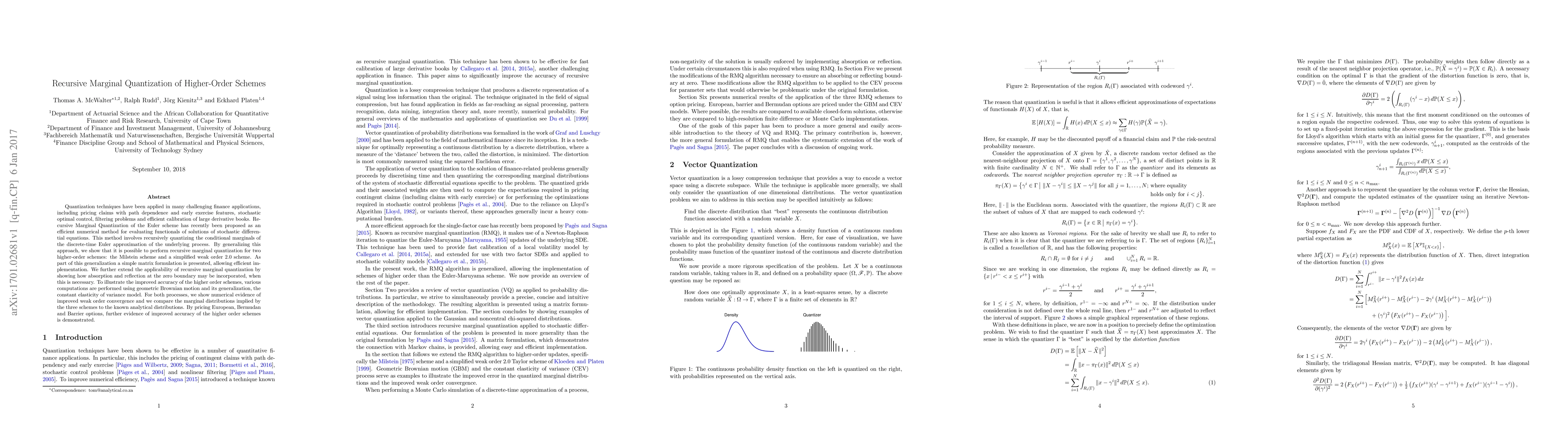Quantization techniques have been applied in many challenging finance applications, including pricing claims with path dependence and early exercise features, stochastic optimal control, filtering problems and efficient calibration of large derivative books. Recursive Marginal Quantization of the Euler scheme has recently been proposed as an efficient numerical method for evaluating functionals of solutions of stochastic differential equations. This method involves recursively quantizing the conditional marginals of the discrete-time Euler approximation of the underlying process. By generalizing this approach, we show that it is possible to perform recursive marginal quantization for two higher-order schemes: the Milstein scheme and a simplified weak order 2.0 scheme. As part of this generalization a simple matrix formulation is presented, allowing efficient implementation. We further extend the applicability of recursive marginal quantization by showing how absorption and reflection at the zero boundary may be incorporated, when this is necessary. To illustrate the improved accuracy of the higher order schemes, various computations are performed using geometric Brownian motion and its generalization, the constant elasticity of variance model. For both processes, we show numerical evidence of improved weak order convergence and we compare the marginal distributions implied by the three schemes to the known analytical distributions. By pricing European, Bermudan and Barrier options, further evidence of improved accuracy of the higher order schemes is demonstrated.