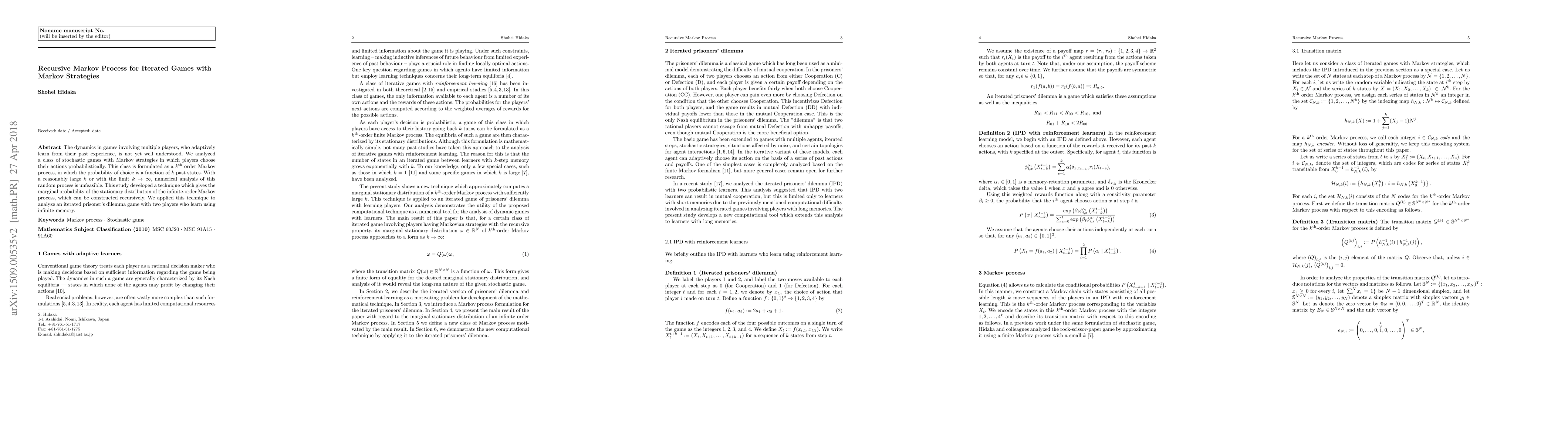Researchers developed a technique to analyze iterated games with Markov strategies using an infinite-order Markov process, finding that two-player prisoner's dilemma games converge to a stable state where cooperation is the dominant strategy.