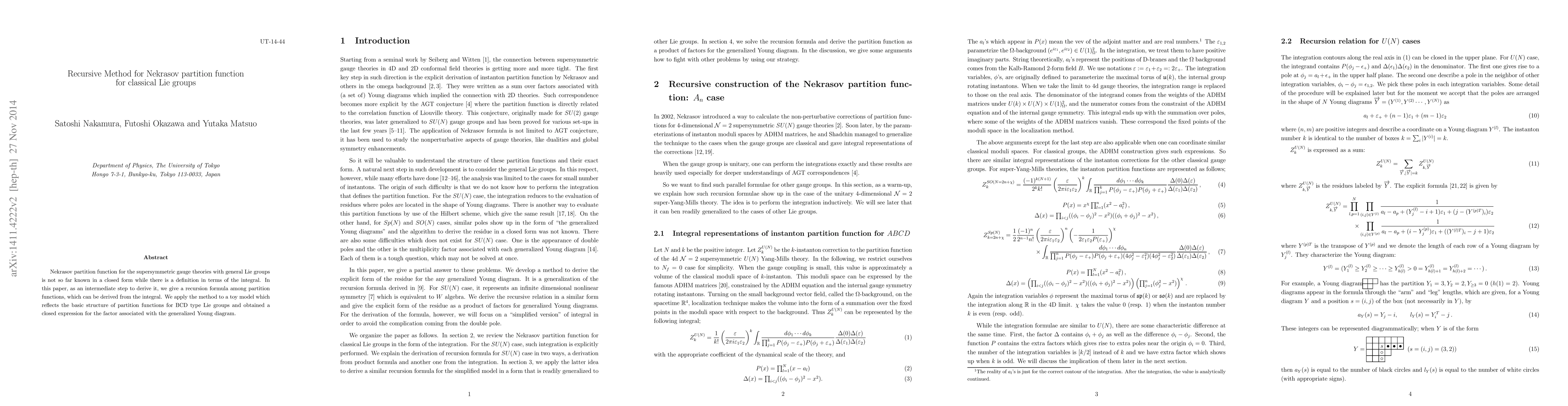 This paper presents a recursive method to derive the Nekrasov partition function for classical Lie groups, providing a recursion formula that simplifies its integral definition. The method is demonstrated in a toy model for BCD type Lie groups, resulting in a closed expression for the factor related to generalized Young diagrams.