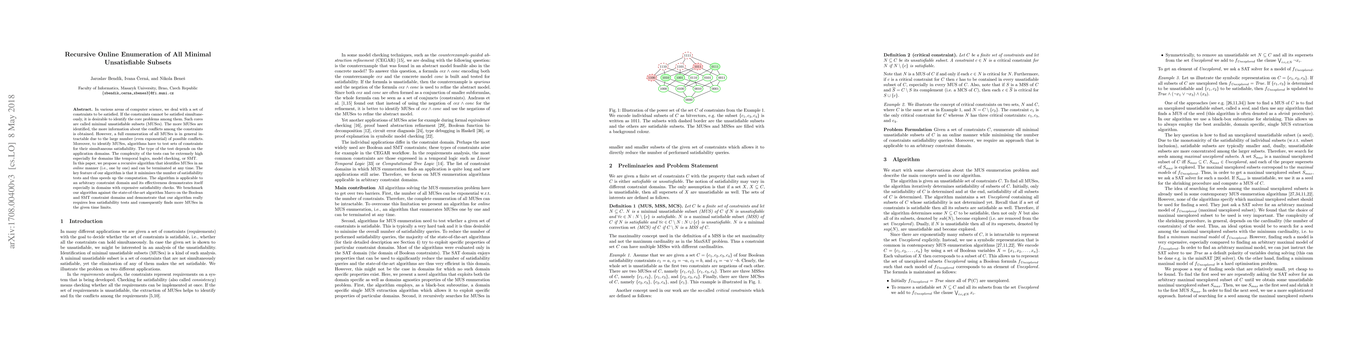 This paper proposes a recursive algorithm to identify minimal unsatisfiable subsets (MUSes) in an online manner, reducing the number of satisfiability tests required, making it faster for complex domains like temporal logics and SMT.