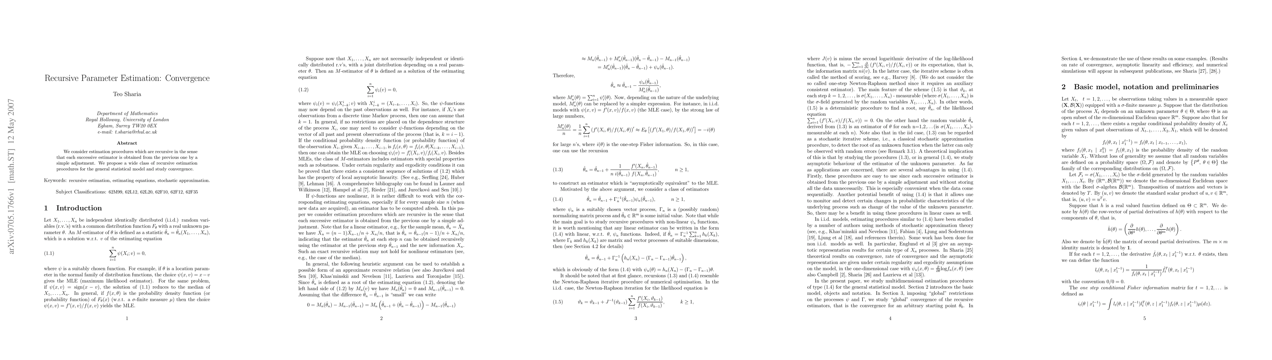 This paper proposes a broad class of recursive estimation methods for general statistical models, focusing on how each successive estimator is derived from the previous one through a simple adjustment, and examines their convergence properties.