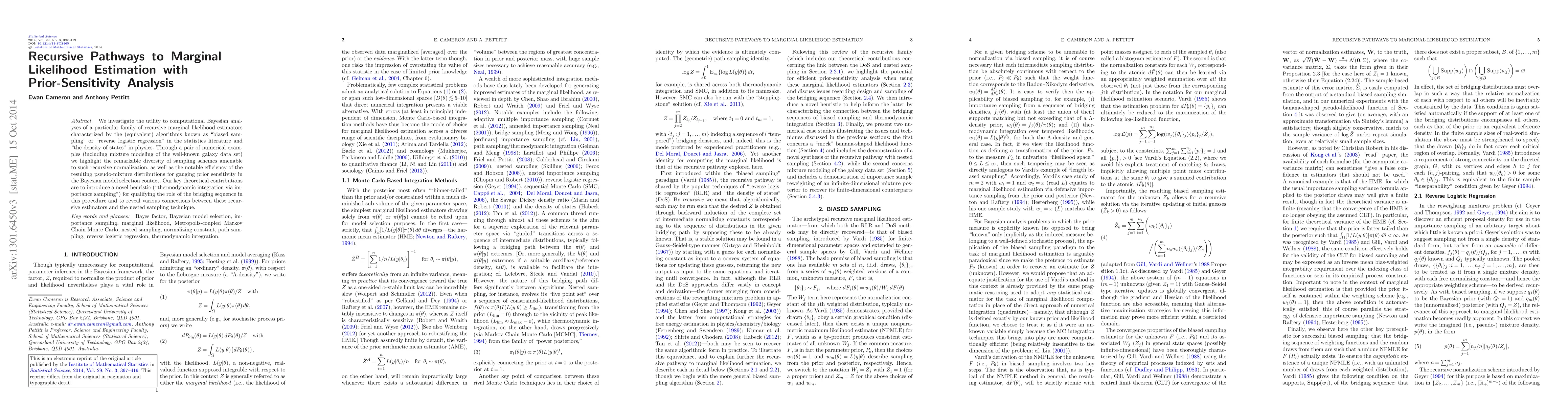 This paper introduces a new method for Bayesian model selection that uses recursive sampling schemes to estimate marginal likelihoods, highlighting their efficiency in gauging prior sensitivity. The study reveals connections between these methods and nested sampling techniques, offering a novel approach to prior-sensitivity analysis.