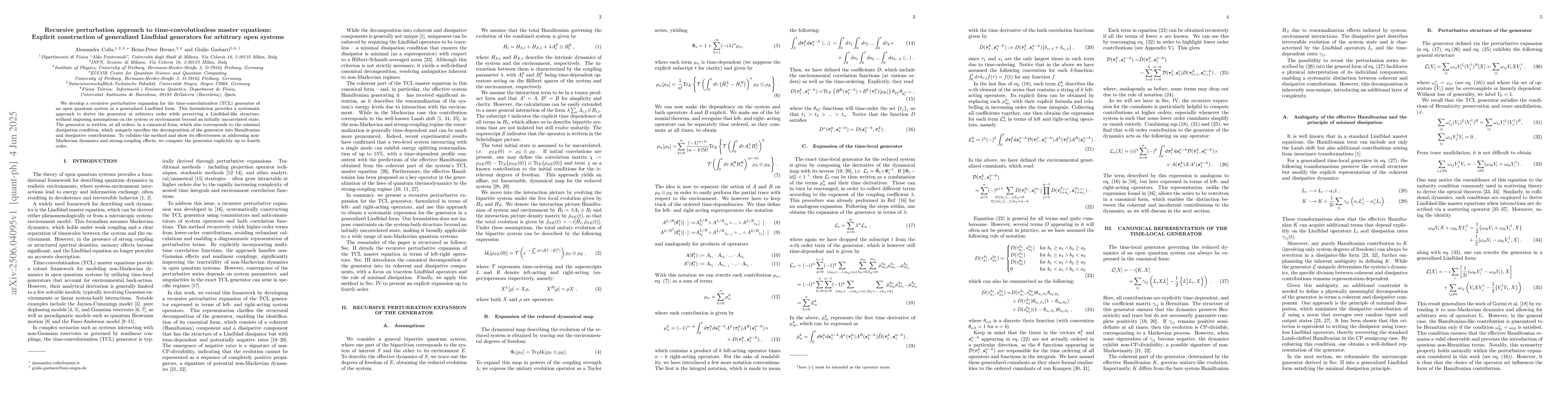 This research introduces a recursive perturbation method to systematically derive time-convolutionless master equations for open quantum systems in a generalized Lindblad form. The approach preserves Lindblad-like structure without strict assumptions on the system or environment, enabling the examination of non-Markovian dynamics and strong-coupling effects up to the fourth order.