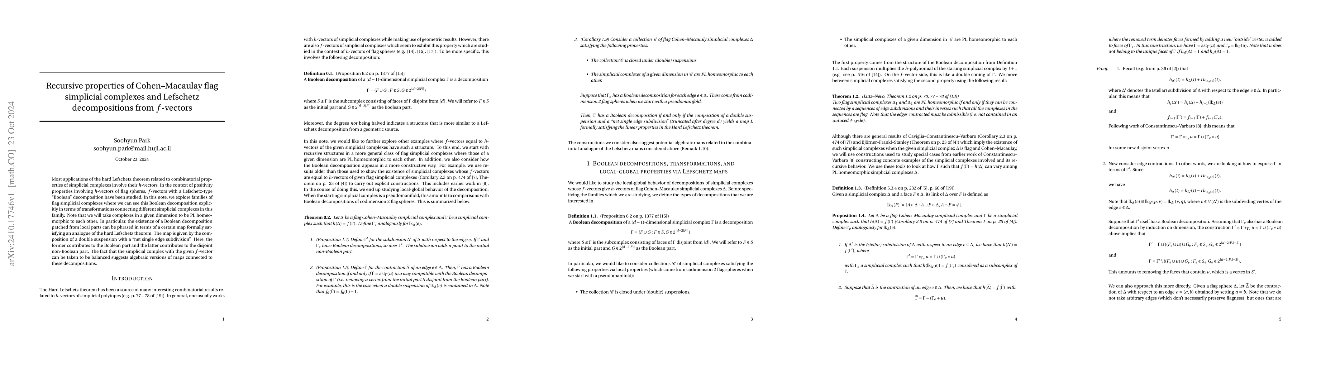 This research investigates recursive properties of Cohen-Macaulay flag simplicial complexes, focusing on their $f$-vectors and Lefschetz decompositions. It reveals a Boolean decomposition in families of flag simplicial complexes through transformations and discusses the existence of a decomposition via a map satisfying an analogue of the hard Lefschetz theorem, involving double suspensions and net single edge subdivisions.
