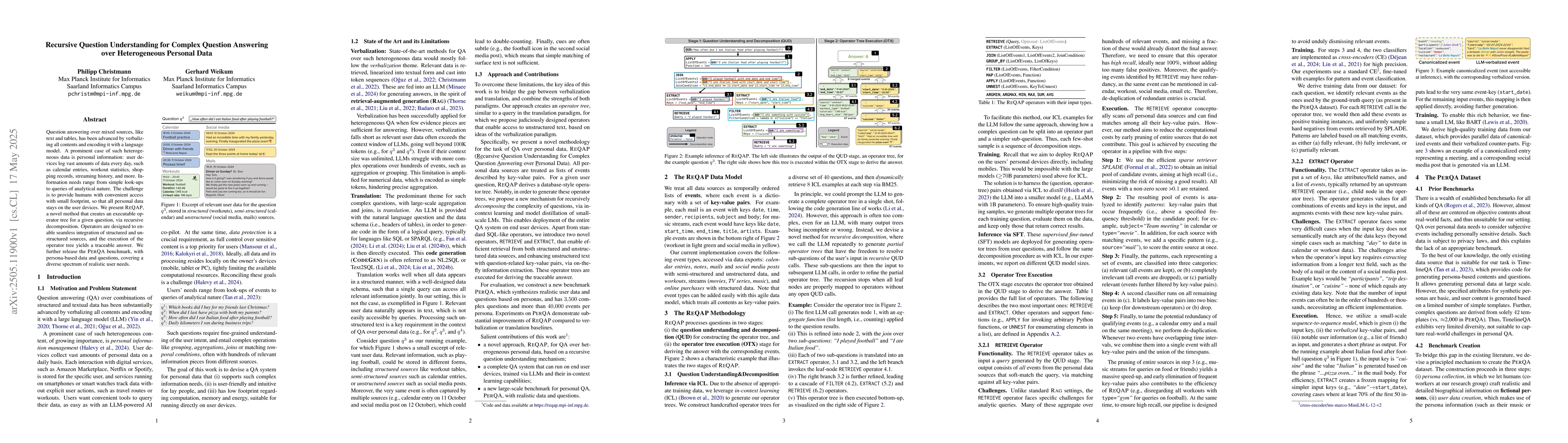 This paper introduces ReQAP, a method that enables humans to access personal data in a convenient way without storing it on the cloud. It uses recursive question answering over heterogeneous data sources like text and tables, providing a small footprint solution.