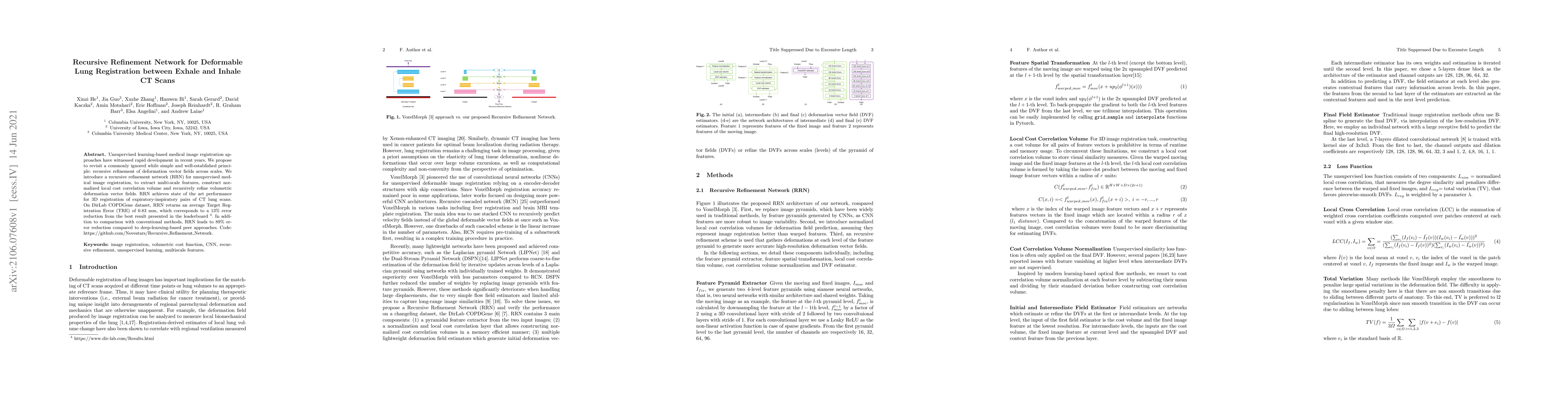 A new approach called Recursive Refinement Network (RRN) achieves state-of-the-art performance in 3D medical image registration of exhale and inhale CT lung scans, reducing error rates by up to 89% compared to existing methods.