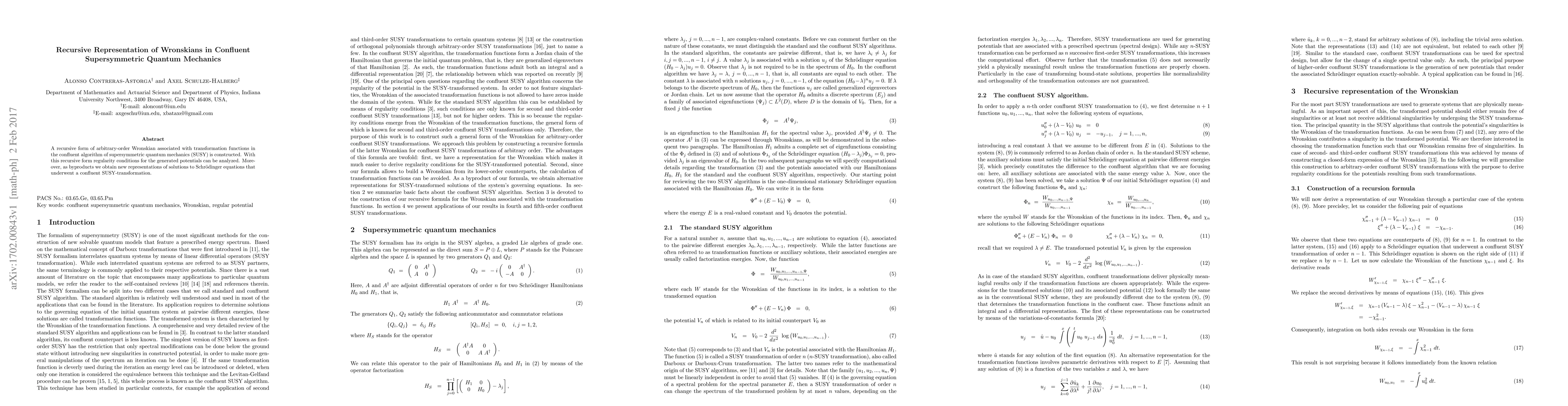 Researchers develop a recursive method for calculating Wronskians in supersymmetric quantum mechanics, providing new insights into potential regularity conditions and generating novel solutions to Schrödinger equations.