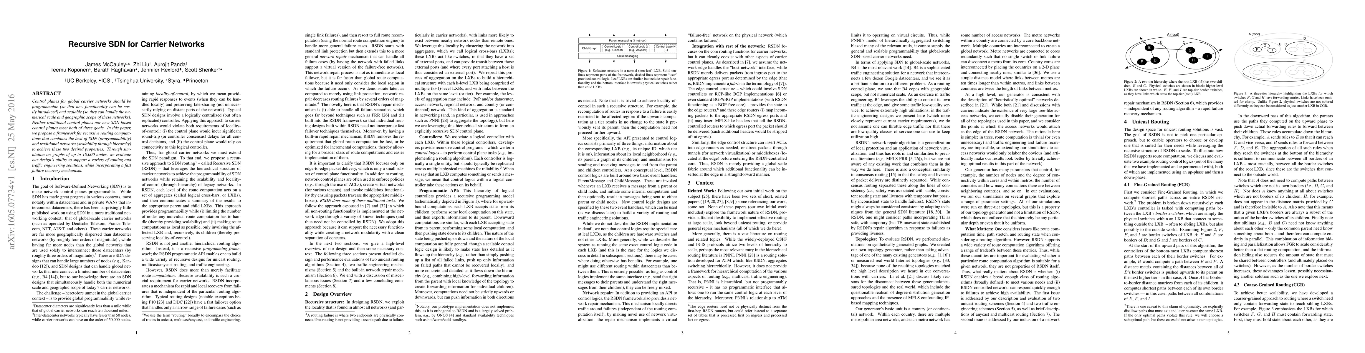 This paper proposes a recursive SDN framework for carrier networks that merges SDN's programmability with traditional network scalability, enabling both flexibility and performance. The framework is evaluated through simulations on large-scale networks, demonstrating effective routing and traffic management with rapid failure recovery.