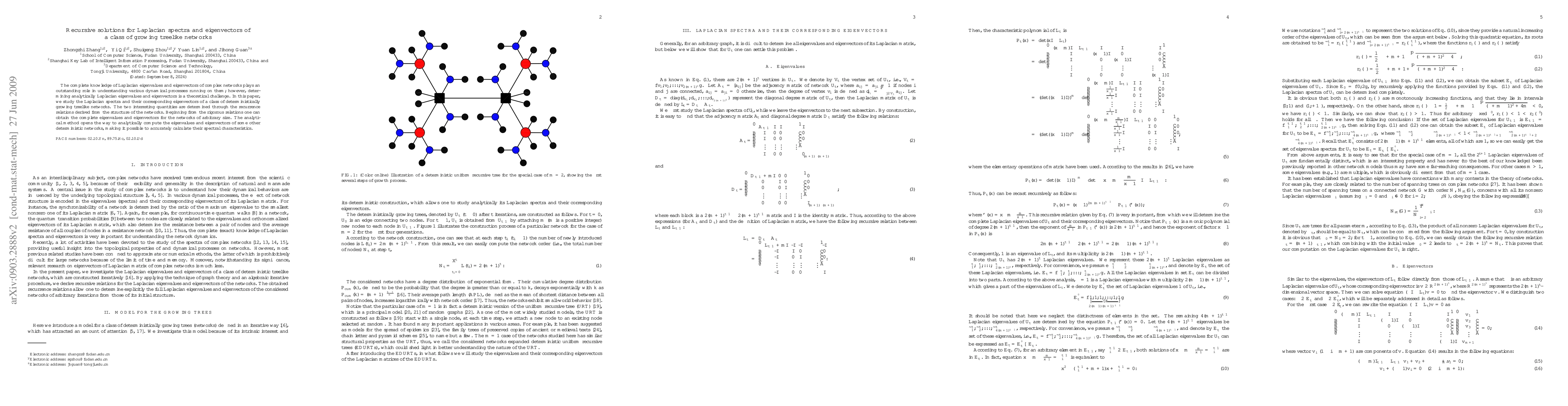 This paper presents recursive methods to determine the Laplacian eigenvalues and eigenvectors of a class of growing treelike networks. Analytical recurrence relations derived from the network's structure allow for the computation of these quantities for networks of any size, facilitating a deeper understanding of dynamical processes on such networks.