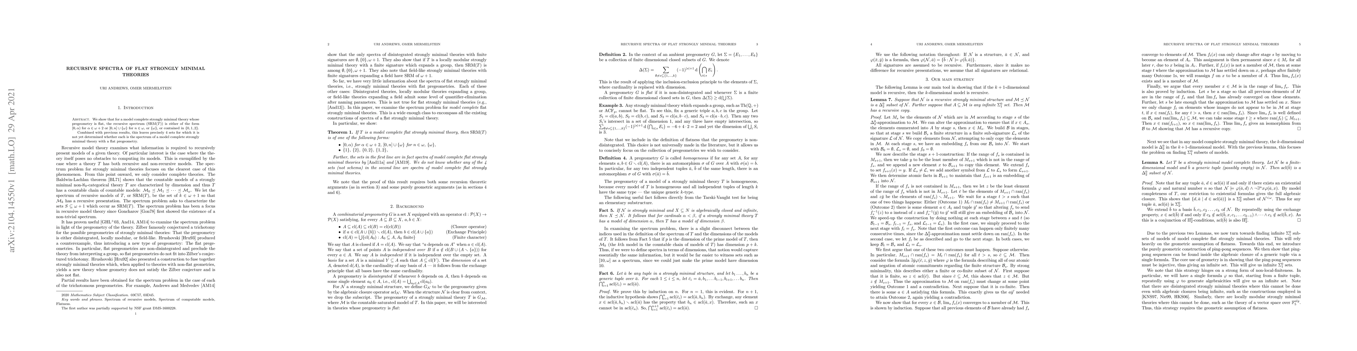 This research identifies that for model complete strongly minimal theories with a flat pregeometry, their recursive spectra (SRM($T$)) are limited to specific forms: $[0,alpha)$ for $alphain omega+2$ or $[0,n]cup{omega}$ for $nin omega$, or ${omega}$, or subsets of ${0,1,2}$. Only four spectrum forms remain unconfirmed for model complete strongly minimal theories with flat pregeometries.
