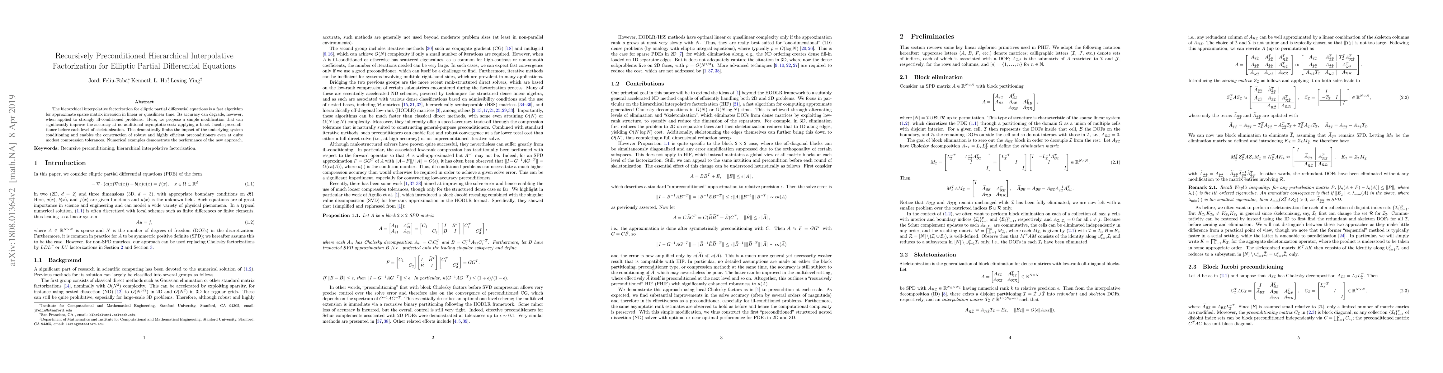 This paper proposes a recursively preconditioned hierarchical interpolative factorization method to improve the accuracy of solving elliptic partial differential equations, especially for ill-conditioned problems, without increasing computational costs. The method employs a block Jacobi preconditioner to enhance robustness and efficiency.