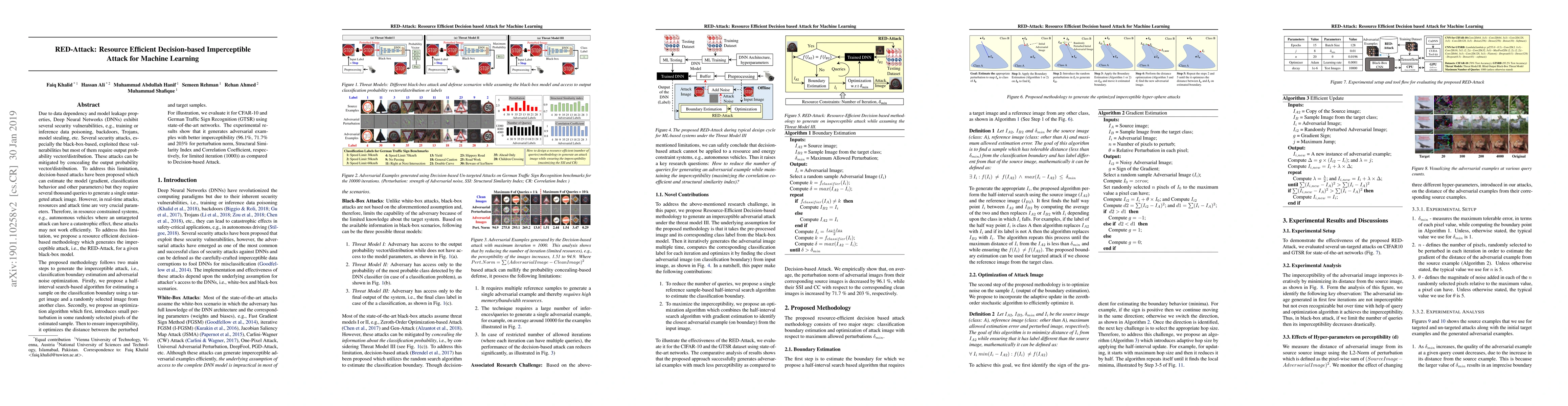 Due to data dependency and model leakage properties, Deep Neural Networks (DNNs) exhibit several security vulnerabilities. Several security attacks exploited them but most of them require the output probability vector. These attacks can be mitigated by concealing the output probability vector. To address this limitation, decision-based attacks have been proposed which can estimate the model but they require several thousand queries to generate a single untargeted attack image. However, in real-time attacks, resources and attack time are very crucial parameters. Therefore, in resource-constrained systems, e.g., autonomous vehicles where an untargeted attack can have a catastrophic effect, these attacks may not work efficiently. To address this limitation, we propose a resource efficient decision-based methodology which generates the imperceptible attack, i.e., the RED-Attack, for a given black-box model. The proposed methodology follows two main steps to generate the imperceptible attack, i.e., classification boundary estimation and adversarial noise optimization. Firstly, we propose a half-interval search-based algorithm for estimating a sample on the classification boundary using a target image and a randomly selected image from another class. Secondly, we propose an optimization algorithm which first, introduces a small perturbation in some randomly selected pixels of the estimated sample. Then to ensure imperceptibility, it optimizes the distance between the perturbed and target samples. For illustration, we evaluate it for CFAR-10 and German Traffic Sign Recognition (GTSR) using state-of-the-art networks.