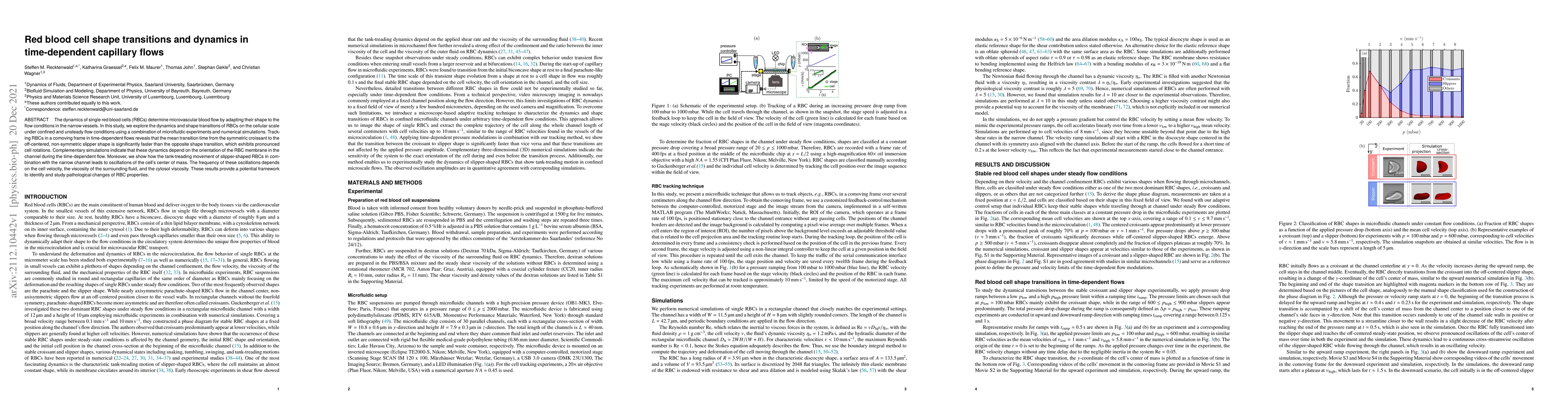 The study utilized a combination of experimental techniques including microfluidics and optical tweezers to analyze the dynamics of red blood cells under various shear flow conditions.