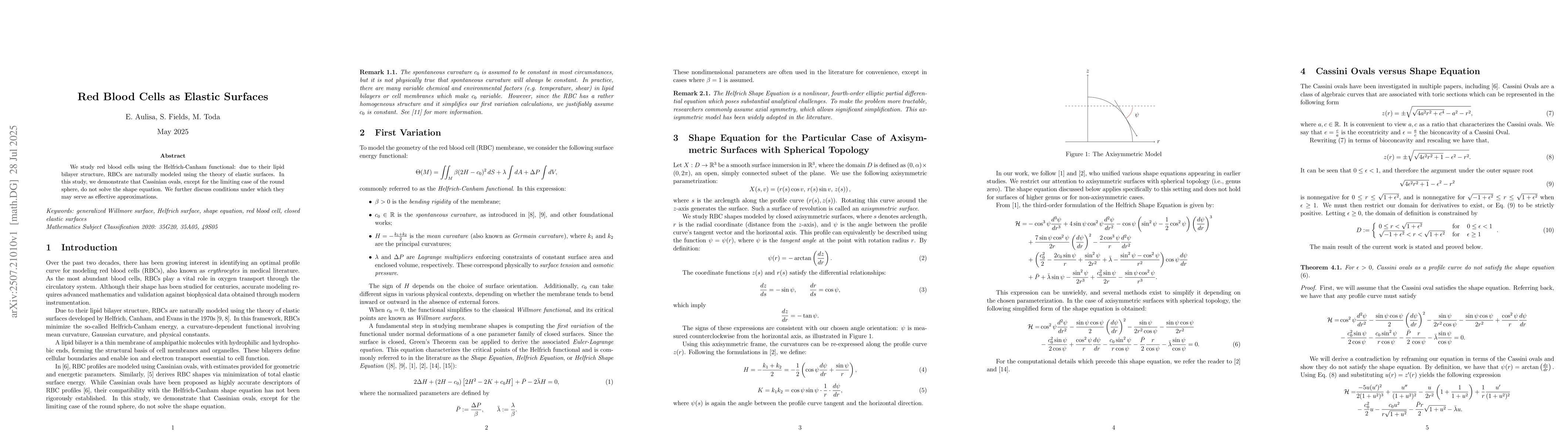 We study red blood cells using the Helfrich-Canham functional: due to their lipid bilayer structure, RBCs are naturally modeled using the theory of elastic surfaces. In this study, we demonstrate that Cassinian ovals, except for the limiting case of the round sphere, do not solve the shape equation. We further discuss conditions under which they may serve as effective approximations.