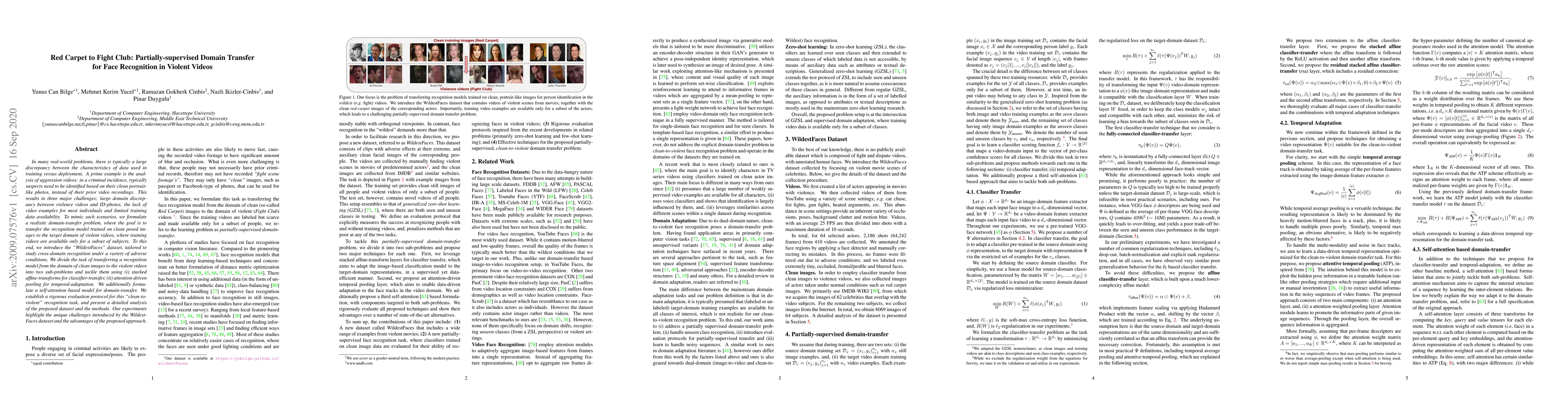 In many real-world problems, there is typically a large discrepancy between the characteristics of data used in training versus deployment. A prime example is the analysis of aggression videos: in a criminal incidence, typically suspects need to be identified based on their clean portrait-like photos, instead of their prior video recordings. This results in three major challenges; large domain discrepancy between violence videos and ID-photos, the lack of video examples for most individuals and limited training data availability. To mimic such scenarios, we formulate a realistic domain-transfer problem, where the goal is to transfer the recognition model trained on clean posed images to the target domain of violent videos, where training videos are available only for a subset of subjects. To this end, we introduce the WildestFaces dataset, tailored to study cross-domain recognition under a variety of adverse conditions. We divide the task of transferring a recognition model from the domain of clean images to the violent videos into two sub-problems and tackle them using (i) stacked affine-transforms for classifier-transfer, (ii) attention-driven pooling for temporal-adaptation. We additionally formulate a self-attention based model for domain-transfer. We establish a rigorous evaluation protocol for this clean-to-violent recognition task, and present a detailed analysis of the proposed dataset and the methods. Our experiments highlight the unique challenges introduced by the WildestFaces dataset and the advantages of the proposed approach.