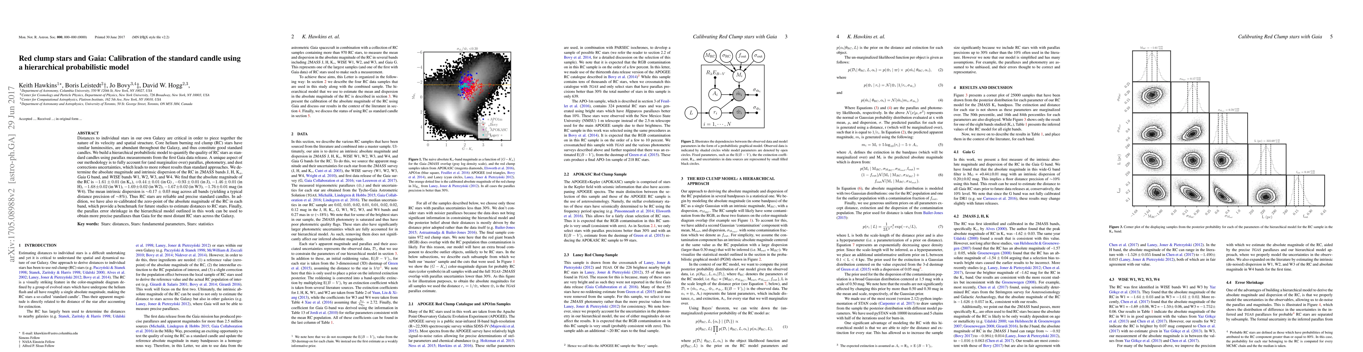 This paper calibrates red clump stars as standard candles using a hierarchical probabilistic model and Gaia parallax data, finding the absolute magnitude and intrinsic dispersion across multiple bands. The study concludes that red clump stars provide reliable and precise distance measurements with a typical precision of 8%.