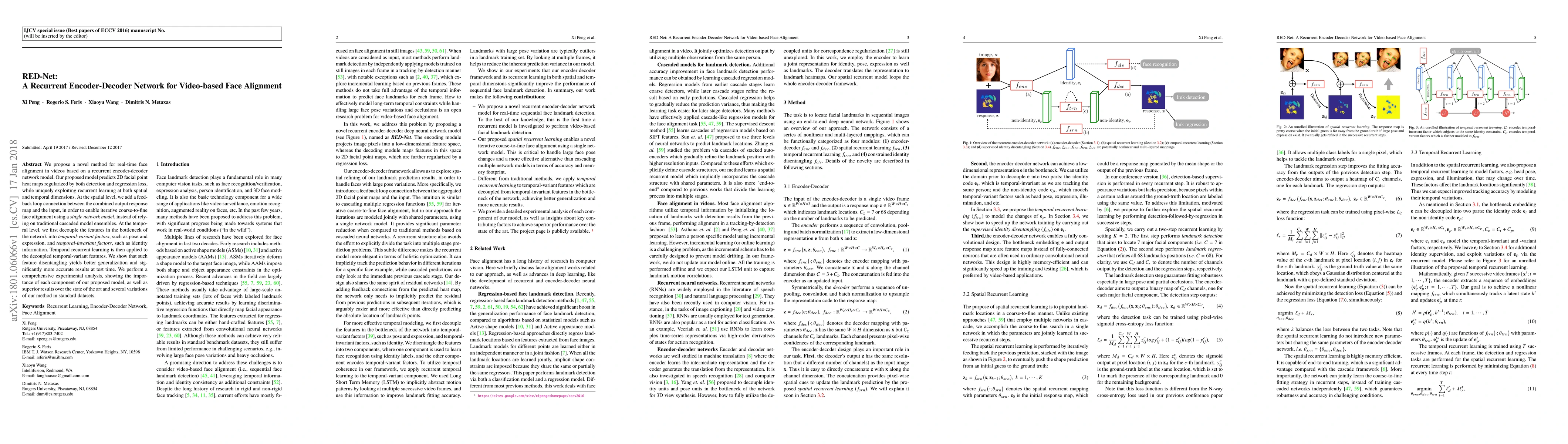 A new video-based face alignment method uses a recurrent encoder-decoder network to predict 2D facial point heat maps with improved accuracy and efficiency. This approach decouples features into temporal-variant and -invariant factors, leading to better generalization and results.