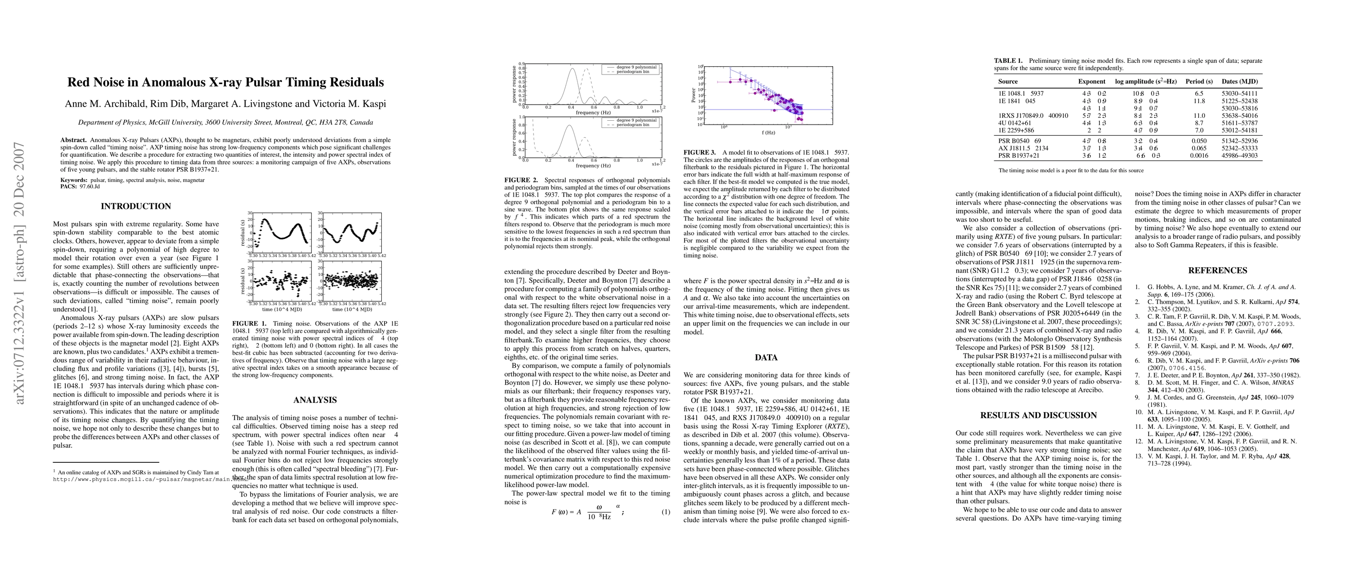 The research describes a procedure for extracting the intensity and power spectral index of timing noise from AXPs using orthogonal polynomial filters, which reject low frequencies strongly and provide reasonable frequency resolution at high frequencies.
