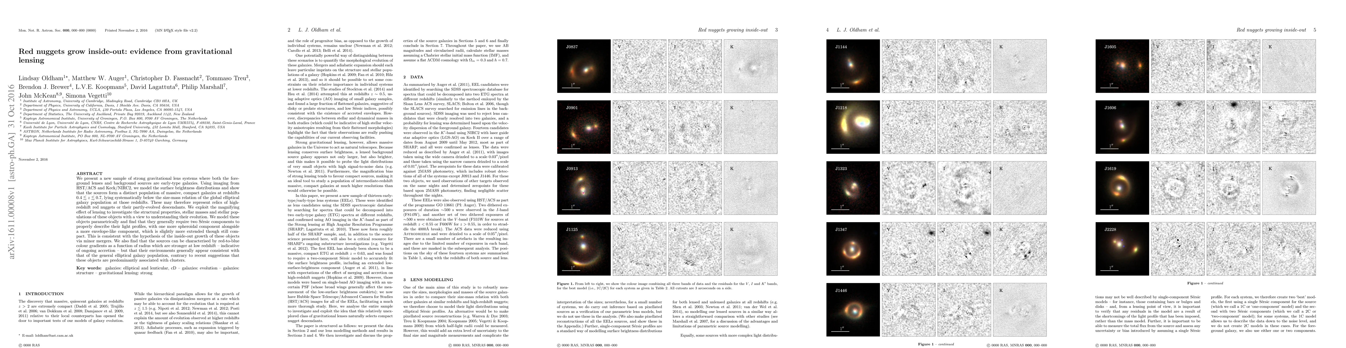 This study uses gravitational lensing to examine early-type galaxies, revealing a population of massive, compact galaxies at intermediate redshifts. These galaxies, potentially descendants of high-redshift 'red nuggets', are found to have two-component light profiles, supporting the 'inside-out growth' theory via minor mergers. Their environments are similar to general elliptial galaxies, contradicting previous claims of cluster association.