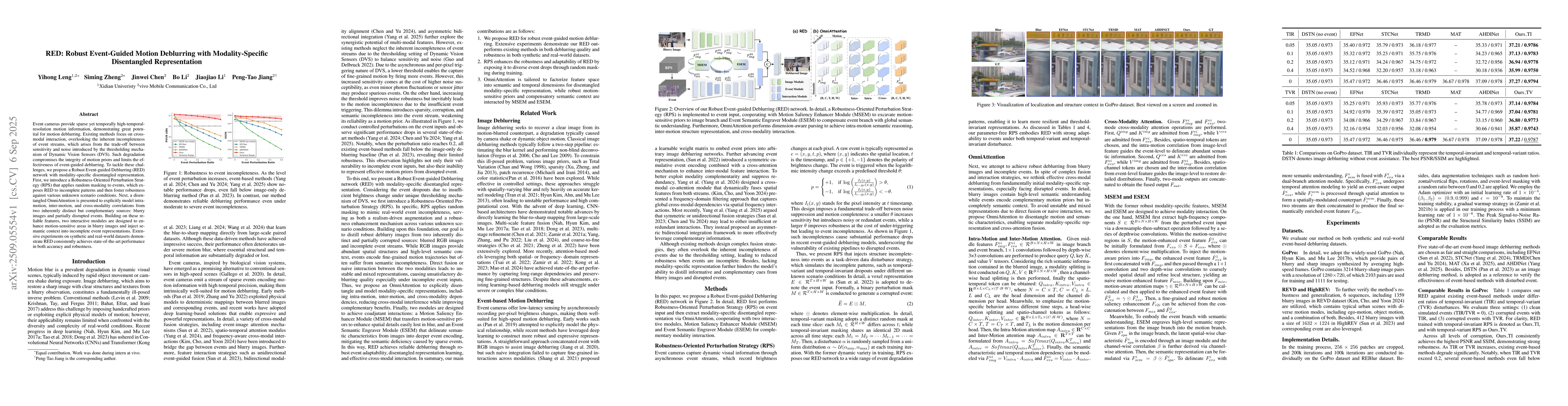 Event cameras provide sparse yet temporally high-temporal-resolution motion information, demonstrating great potential for motion deblurring. Existing methods focus on cross-modal interaction, overlooking the inherent incompleteness of event streams, which arises from the trade-off between sensitivity and noise introduced by the thresholding mechanism of Dynamic Vision Sensors (DVS). Such degradation compromises the integrity of motion priors and limits the effectiveness of event-guided deblurring. To tackle these challenges, we propose a Robust Event-guided Deblurring (RED) network with modality-specific disentangled representation. First, we introduce a Robustness-Oriented Perturbation Strategy (RPS) that applies random masking to events, which exposes RED to incomplete patterns and then foster robustness against various unknown scenario conditions.Next, a disentangled OmniAttention is presented to explicitly model intra-motion, inter-motion, and cross-modality correlations from two inherently distinct but complementary sources: blurry images and partially disrupted events. Building on these reliable features, two interactive modules are designed to enhance motion-sensitive areas in blurry images and inject semantic context into incomplete event representations. Extensive experiments on synthetic and real-world datasets demonstrate RED consistently achieves state-of-the-art performance in both accuracy and robustness.