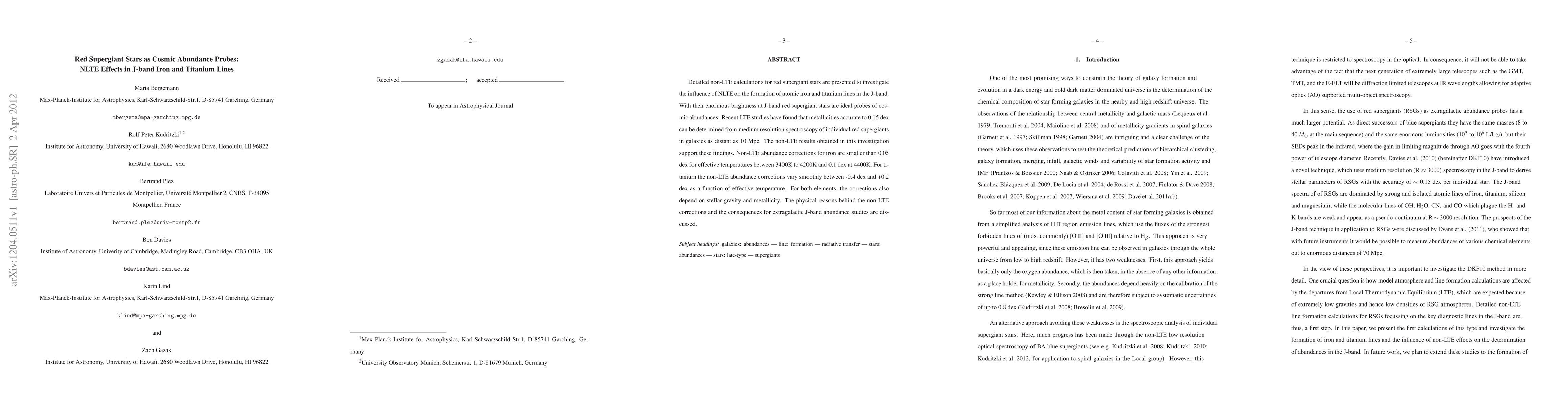 Red supergiant stars can accurately probe cosmic abundances with minimal non-LTE effects, allowing for precise measurements of iron and titanium line strengths.