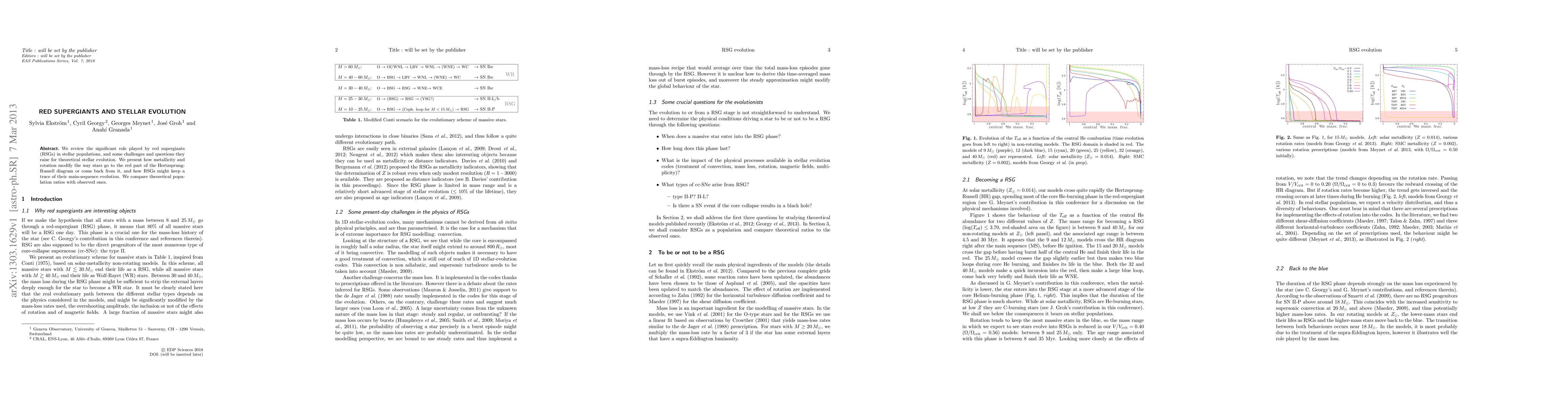 We review the significant role played by red supergiants (RSGs) in stellar populations, and some challenges and questions they raise for theoretical stellar evolution. We present how metallicity and rotation modify the way stars go to the red part of the Hertzsprung- Russell diagram or come back from it, and how RSGs might keep a trace of their main-sequence evolution. We compare theoretical popu- lation ratios with observed ones.
