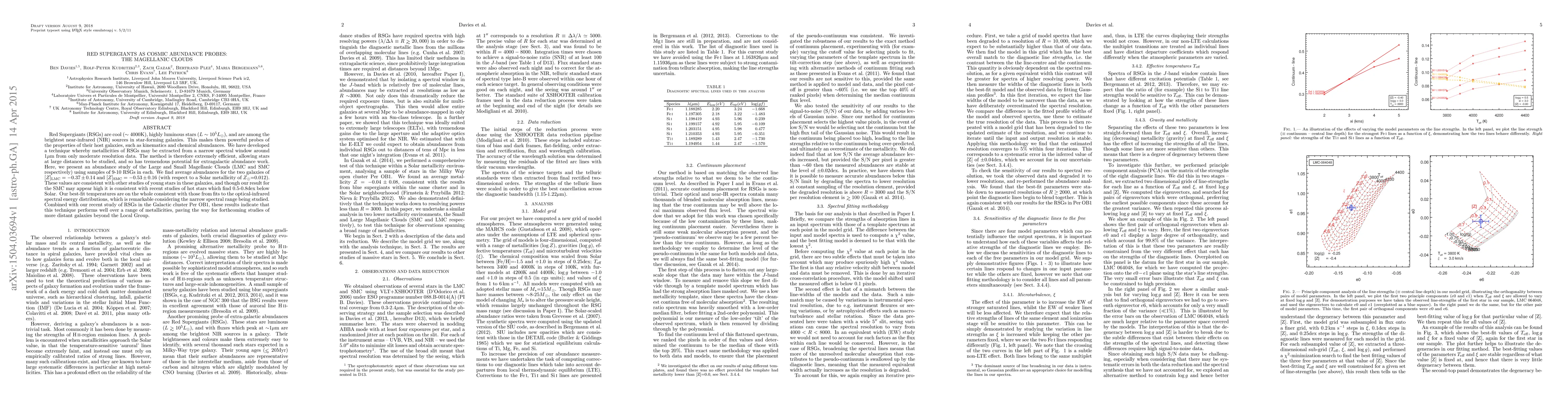 Red Supergiants (RSGs) are cool (~4000K), highly luminous stars (L - 10^5 Lsun), and are among the brightest near-infrared (NIR) sources in star-forming galaxies. This makes them powerful probes of the properties of their host galaxies, such as kinematics and chemical abundances. We have developed a technique whereby metallicities of RSGs may be extracted from a narrow spectral window around 1{\mu}m from only moderate resolution data. The method is therefore extremely efficient, allowing stars at large distances to be studied, and so has tremendous potential for extragalactic abundance work. Here, we present an abundance study of the Large and Small Magellanic Clouds (LMC and SMC respectively) using samples of 9-10 RSGs in each. We find average abundances for the two galaxies of [Z]LMC = -0.37 +/- 0.14 and [Z]SMC = -0.53 +/- 0.16 (with respect to a Solar metallicity of Zsun=0.012). These values are consistent with other studies of young stars in these galaxies, and though our result for the SMC may appear high it is consistent with recent studies of hot stars which find 0.5-0.8dex below Solar. Our best-fit temperatures are on the whole consistent with those from fits to the optical-infrared spectral energy distributions, which is remarkable considering the narrow spectral range being studied. Combined with our recent study of RSGs in the Galactic cluster Per OB1, these results indicate that this technique performs well over a range of metallicities, paving the way for forthcoming studies of more distant galaxies beyond the Local Group.