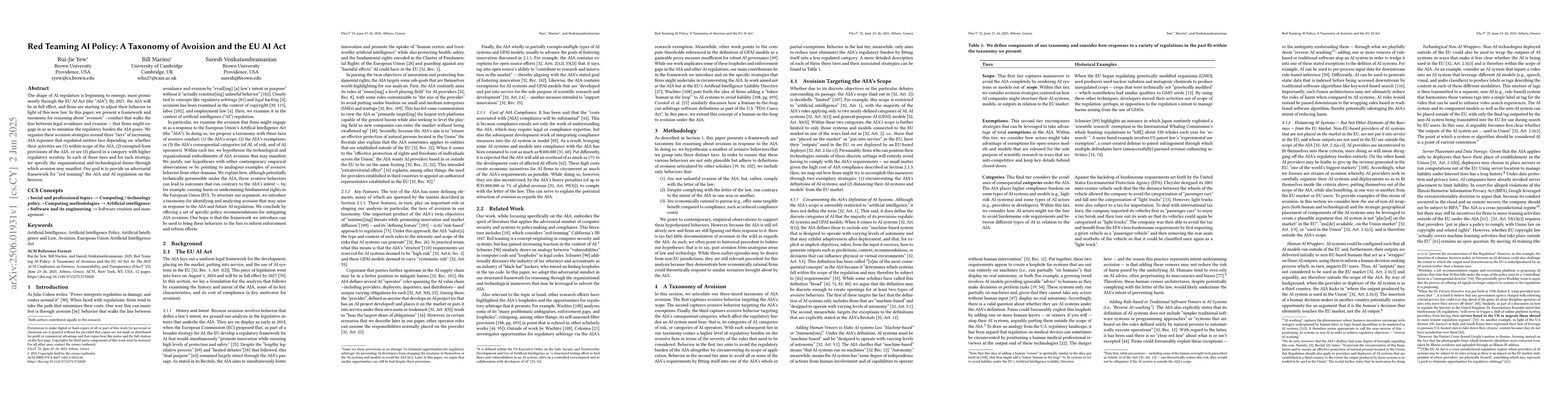 The paper presents a framework and taxonomy for reasoning about 'avoision' strategies that firms might engage in to minimize the regulatory burden of the EU AI Act, organized into three tiers based on the level of exposure to the AIA.