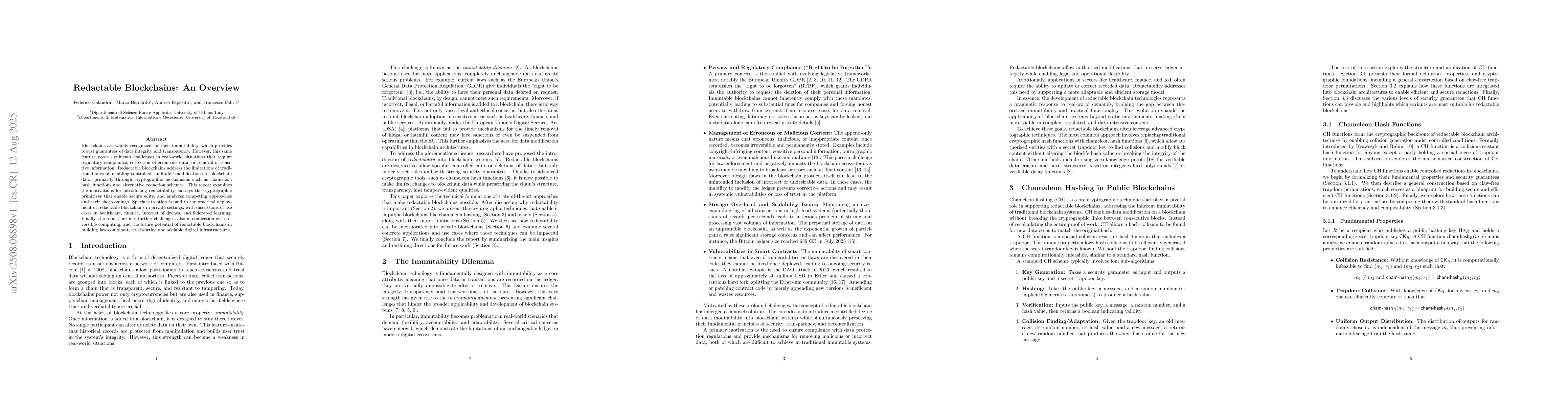 Blockchains are widely recognized for their immutability, which provides robust guarantees of data integrity and transparency. However, this same feature poses significant challenges in real-world situations that require regulatory compliance, correction of erroneous data, or removal of sensitive information. Redactable blockchains address the limitations of traditional ones by enabling controlled, auditable modifications to blockchain data, primarily through cryptographic mechanisms such as chameleon hash functions and alternative redaction schemes. This report examines the motivations for introducing redactability, surveys the cryptographic primitives that enable secure edits, and analyzes competing approaches and their shortcomings. Special attention is paid to the practical deployment of redactable blockchains in private settings, with discussions of use cases in healthcare, finance, Internet of drones, and federated learning. Finally, the report outlines further challenges, also in connection with reversible computing, and the future potential of redactable blockchains in building law-compliant, trustworthy, and scalable digital infrastructures.