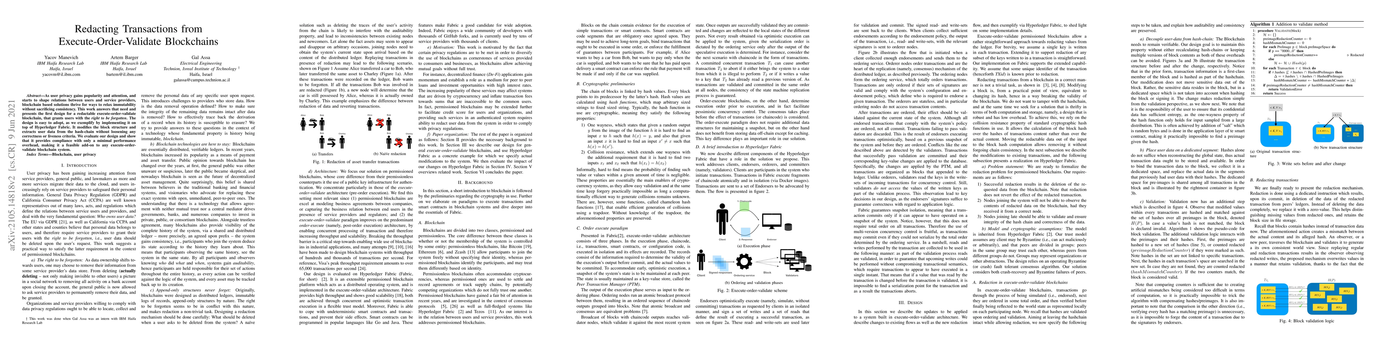 As user privacy gains popularity and attention, and starts to shape relations between users and service providers, blockchain based solutions thrive for ways to relax immutability without sacrificing consistency. This work answers that need and presents the first design for a redactable execute-order-validate blockchain, that grants users with the \emph{right to be forgotten}. The design is easy to adopt, as we exemplify by implementing it on top of Hyperledger Fabric. It modifies the block structure and extracts user data from the hash-chain without loosening any correctness or liveness criteria. We evaluate our design and show that it provides compliance with only a minimal performance overhead, making it a feasible add-on to any execute-order-validate blockchain system.