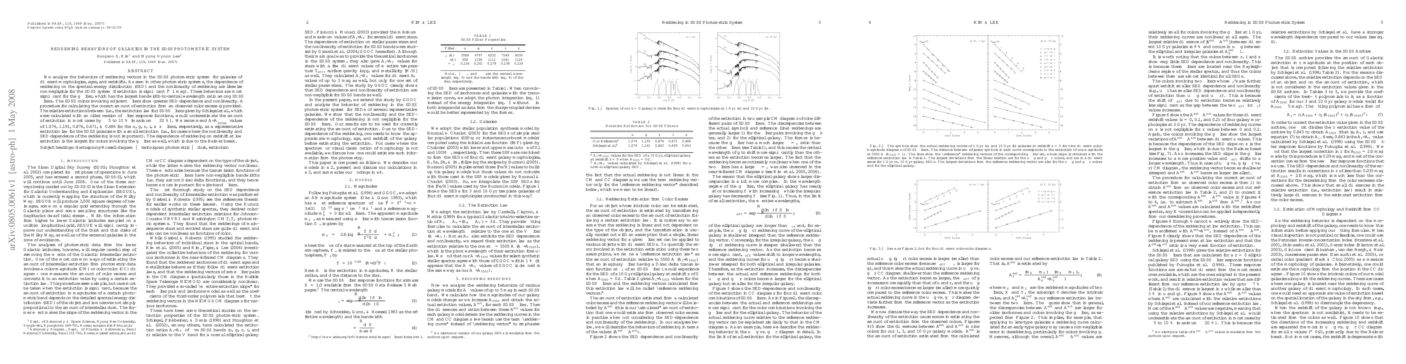 This paper investigates the reddening behaviors in the SDSS photometric system across galaxies of varying morphologies, ages, and redshifts, finding significant nonlinearity and spectral energy distribution dependence, especially for the g filter. The study proposes updated extinction law values for SDSS filters and highlights the importance of considering these factors for accurate galaxy analysis.