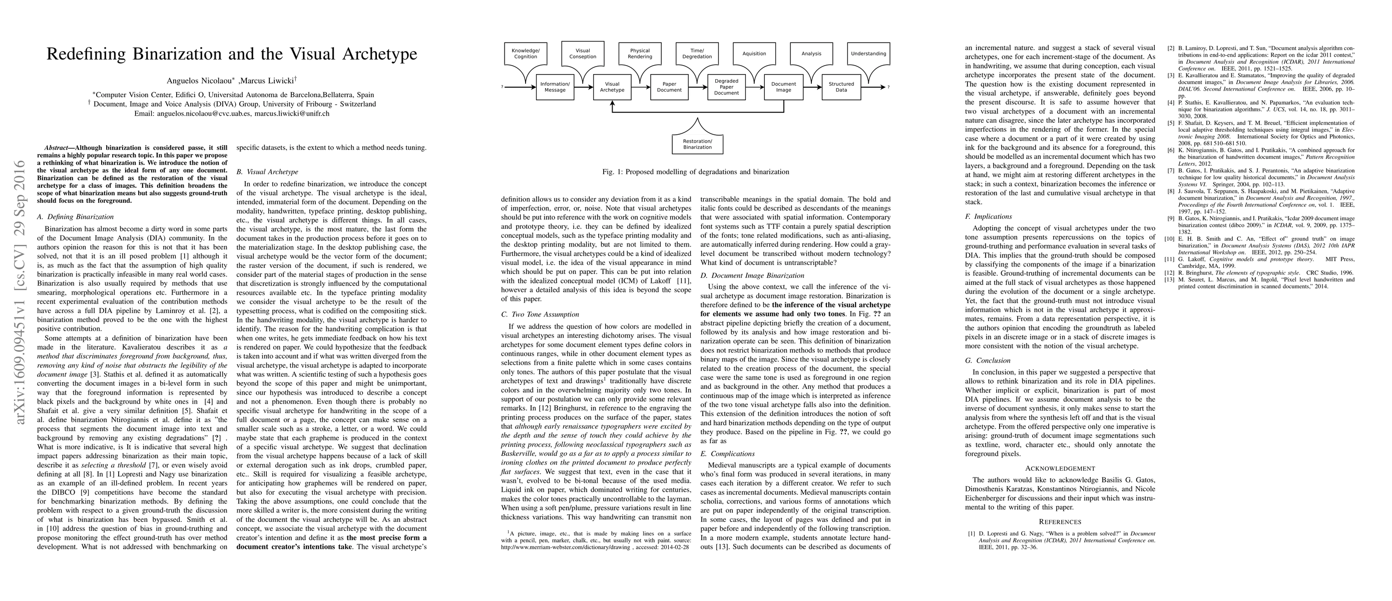 Although binarization is considered passe, it still remains a highly popular research topic. In this paper we propose a rethinking of what binarization is. We introduce the notion of the visual archetype as the ideal form of any one document. Binarization can be defined as the restoration of the visual archetype for a class of images. This definition broadens the scope of what binarization means but also suggests ground-truth should focus on the foreground.