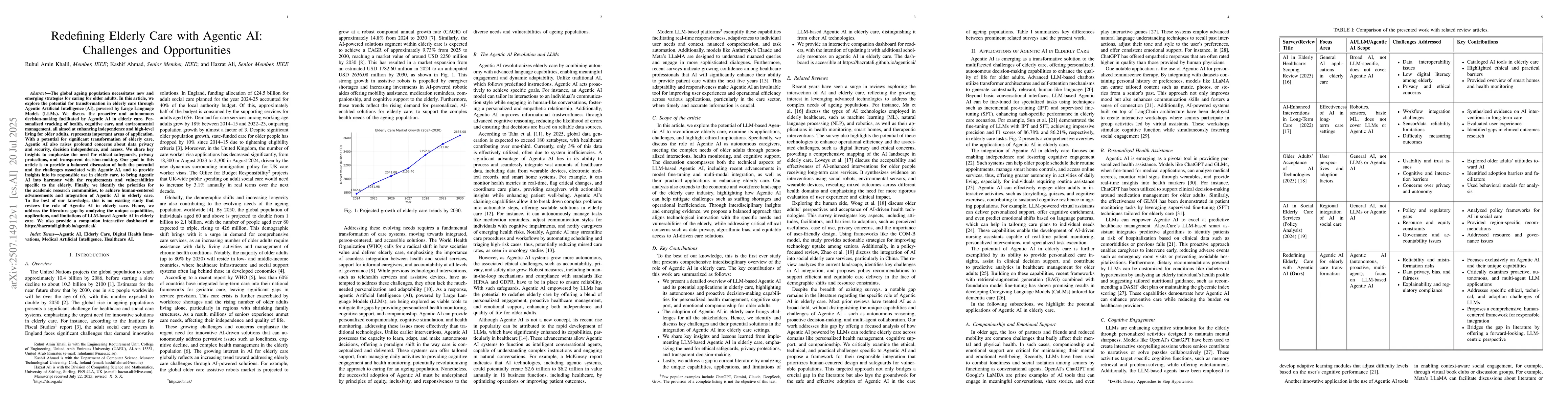 The paper provides a detailed examination of Agentic AI's role in elderly care, highlighting its potential to revolutionize proactive and autonomous decision-making in this field.