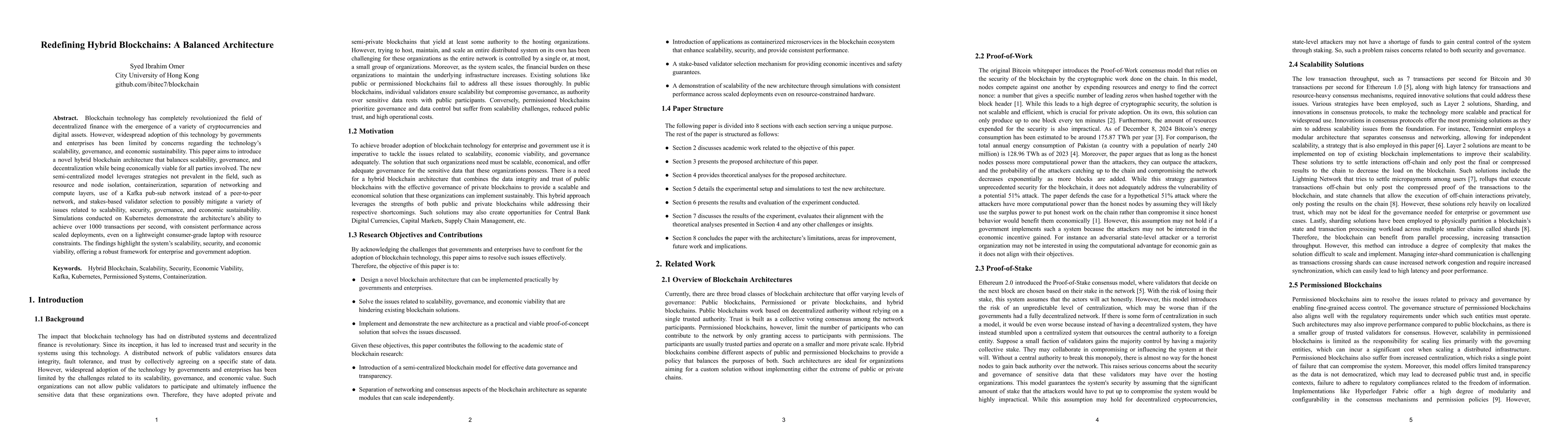 A new hybrid blockchain architecture offers a scalable, secure, and economically viable solution for governments and enterprises, achieving over 1000 transactions per second through innovative strategies like resource isolation and stakes-based validation.