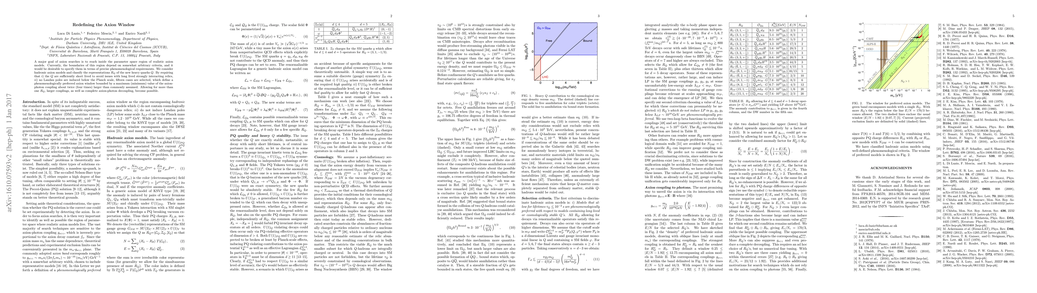 A major goal of axion searches is to reach inside the parameter space region of realistic axion models. Currently, the boundaries of this region depend on somewhat arbitrary criteria, and it would be desirable to specify them in terms of precise phenomenological requirements. We consider hadronic axion models and classify the representations $R_Q$ of the new heavy quarks $Q$. By requiring that $i)$ the $Q$ are sufficiently short lived to avoid issues with long lived strongly interacting relics, $ii)$ no Landau poles are induced below the Planck scale, fifteen cases are selected, which define a phenomenologically preferred axion window bounded by a maximum (minimum) value of the axion-photon coupling about twice (four times) larger than commonly assumed. Allowing for more than one $R_Q$, larger couplings, as well as complete axion-photon decoupling, become possible.