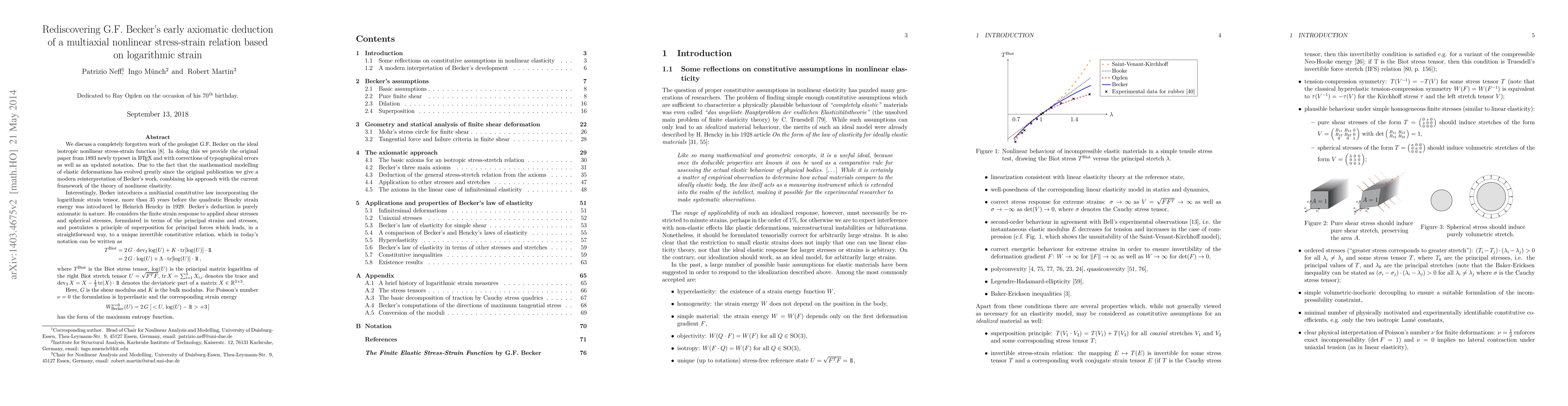 This paper revisits G.F. Becker's 1893 axiomatic derivation of a multiaxial nonlinear stress-strain relationship based on logarithmic strain, correcting typographical errors and updating notation. It reinterprets Becker's pioneering work within the modern framework of nonlinear elasticity, highlighting his early introduction of a logarithmic strain tensor model.