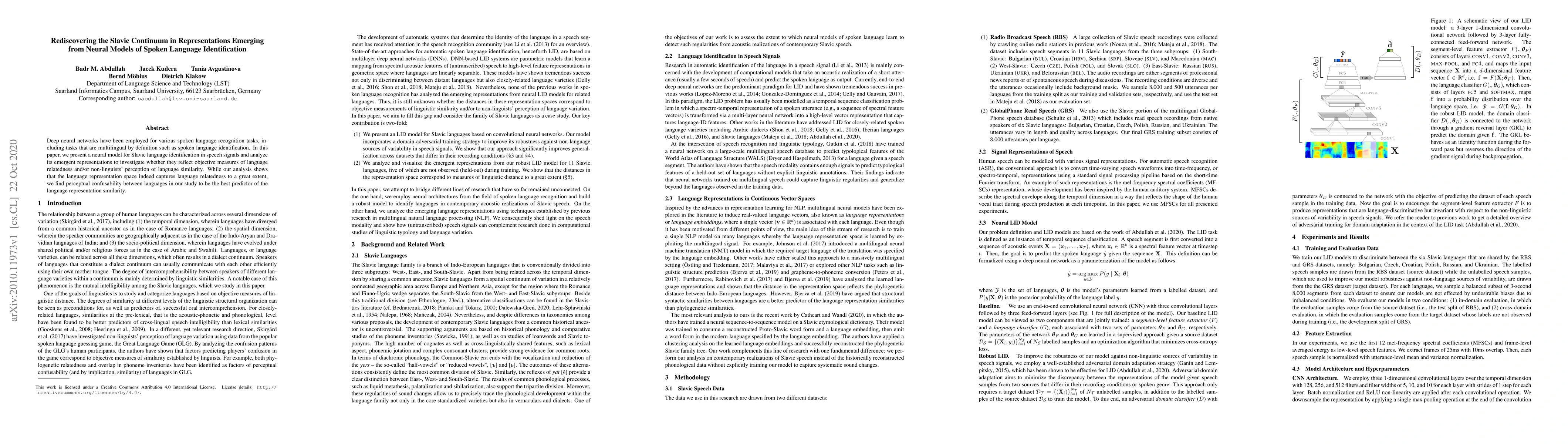 This paper develops a neural model for identifying Slavic languages in speech and examines its emergent representations to determine if they reflect linguistic relatedness or non-expert perceptions of similarity. The analysis reveals that while the model captures linguistic relatedness, perceptual confusability is the strongest predictor of representation similarity.