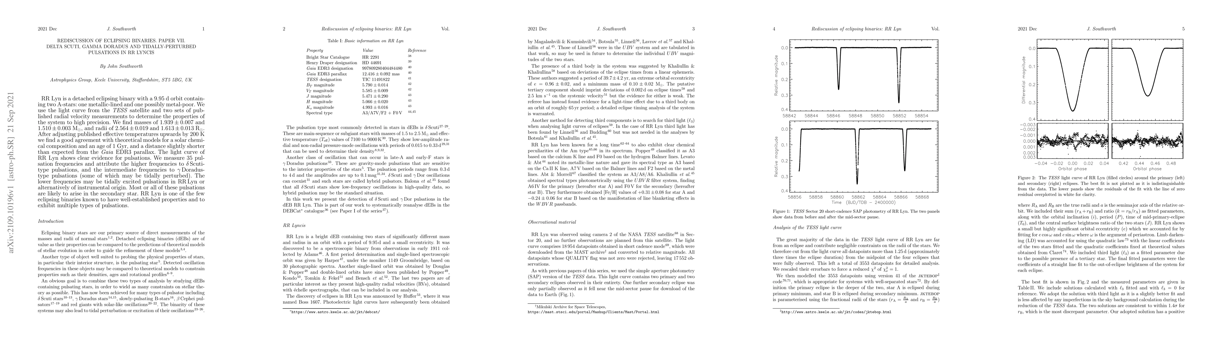 RR Lyn is a detached eclipsing binary with two A-stars, exhibiting delta Scuti and gamma Doradus pulsations, with precise mass and radius measurements derived from TESS light curve and radial velocity data. The system's pulsations, likely originating in the secondary star, include tidally-perturbed gamma Doradus frequencies.