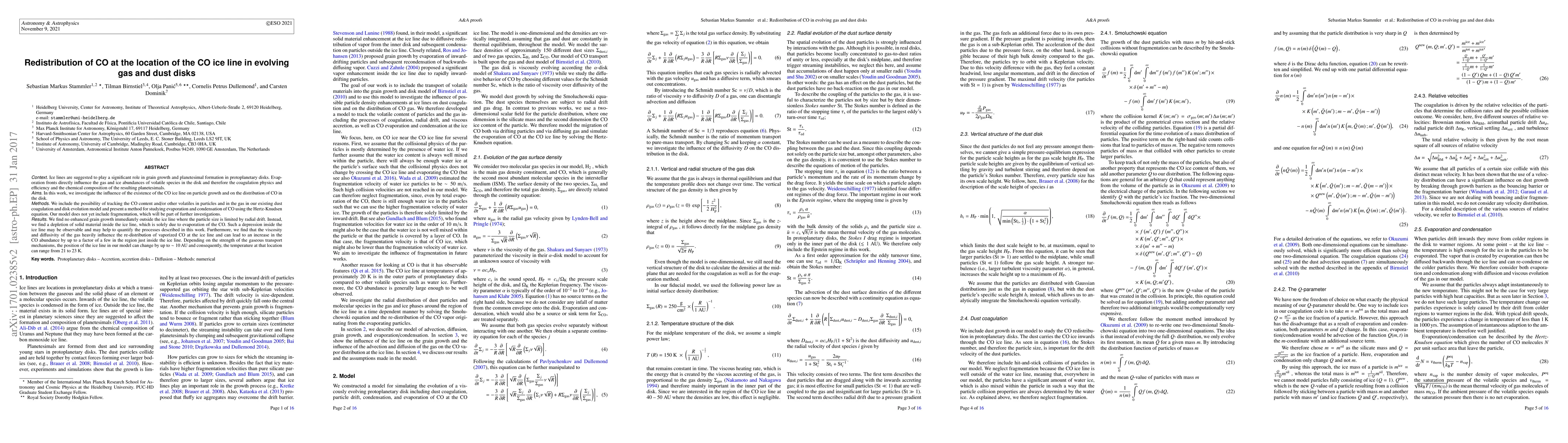 Context. Ice lines are suggested to play a significant role in grain growth and planetesimal formation in protoplanetary disks. Evaporation fronts directly influence the gas and ice abundances of volatile species in the disk and therefore the coagulation physics and efficiency and the chemical composition of the resulting planetesimals. Aims. In this work we investigate the influence of the existence of the CO ice line on the particle growth and on the distribution of CO in the disk. Methods. We include the possibility of tracking the CO content and/or other volatiles in particles and in the gas in our existing dust coagulation and disk evolution model and developed a method for evaporation and condensation of CO using the Hertz-Knudsen equation. Our model does not include fragmentation, yet, which will be part of further investigations. Results. We find no enhanced grain growth just outside the ice line where the particle size is limited by radial drift. Instead we find a depletion of solid material inside the ice line which is solely due to evaporation of the CO. Such a depression inside the ice line may be observable and may help to quantify the processes described in this work. Furthermore, we find that the viscosity and diffusivity of the gas heavily influence the re-distribution of vaporized CO at the ice line and can lead to an increase in the CO abundance by up to a factors of a few in the region just inside the ice line. Depending on the strength of the gaseous transport mechanisms the position of the ice line in our model can change by up to 10 AU and consequently, the temperature at that location can range from 21 K to 23 K.